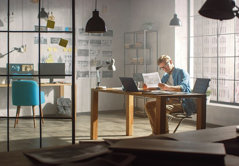 Алюминиевые двери - это зонирование пространства, много света и надежность в одном функциональном решении. Идеально для офиса или студии.