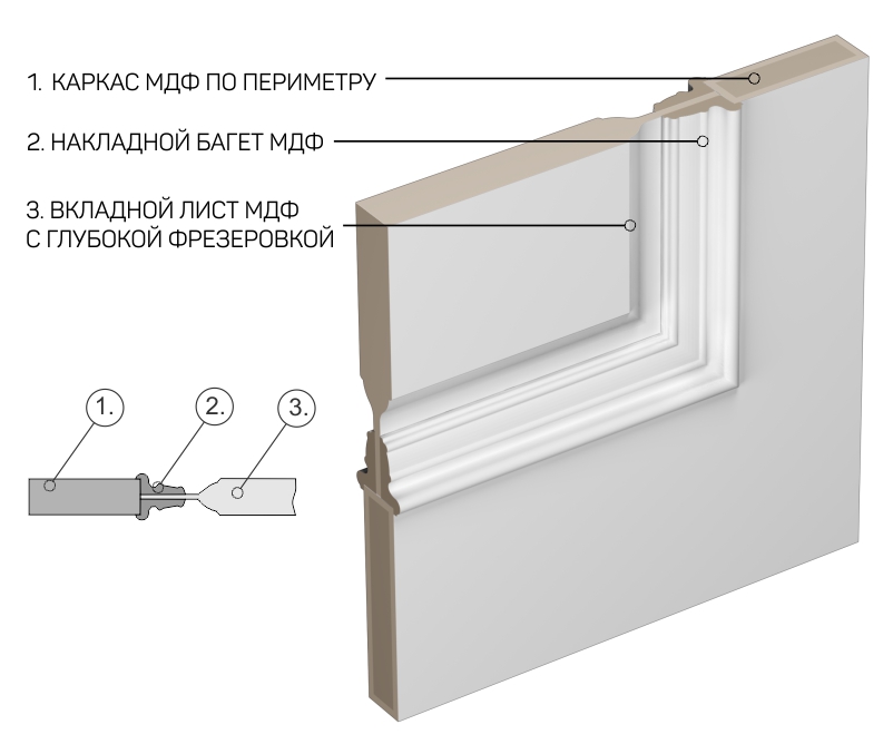 Для армирования каркаса используется МДФ EGGER толщиной 6 мм. В процессе производства плиты МДФ естественным образом выделяются связующие компоненты – лигнины и парафин. Парафин закрывает поры, тем самым повышает влагоустойчивость. Никаких других добавок МДФ не содержит и действительно экологичен (отвечает требованиям категории Е1 - не содержит формальдегид). Именно это делает МДФ EGGER лучшим на сегодняшний день пильным материалом для мебели и дверей.