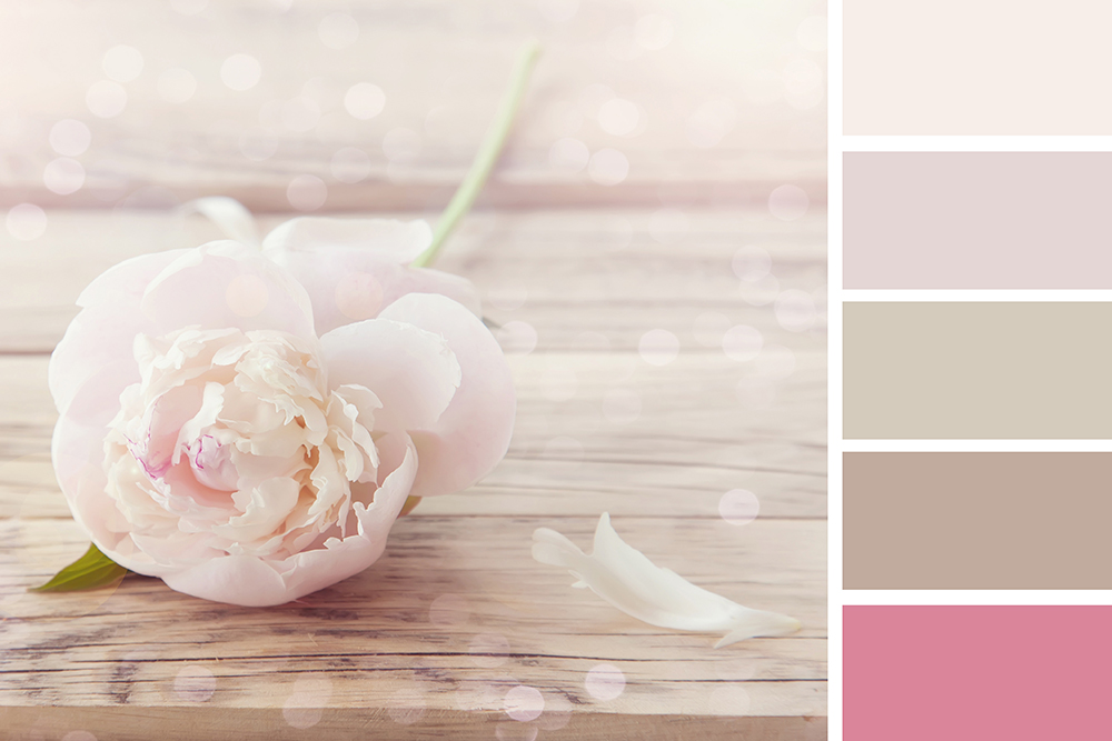 Основу цветовой гаммы составляют естественные нейтральные цвета. Среди них белый, светло-серый, сливочный, бежевый, слоновая кость, кофе с молоком, не слишком темные тона коричневого. Благодаря преобладанию светлых тонов помещения становятся более просторными, а в сочетании с насыщенными оттенками в интерьере появляется аккуратная графичность. Сделать акценты в обстановке позволяют приятные яркие краски: мятная, бирюзовая, лиловая, коралловая, бордовая. Придать интерьеру аристократичности и благородства позволяют вкрапления серебряных, бронзовых и золотистых элементов. Также можно использовать яркие акценты, сочетающие в себе несколько броских тонов, но в основном в виде декора: декоративные подушки, светильники, картины.