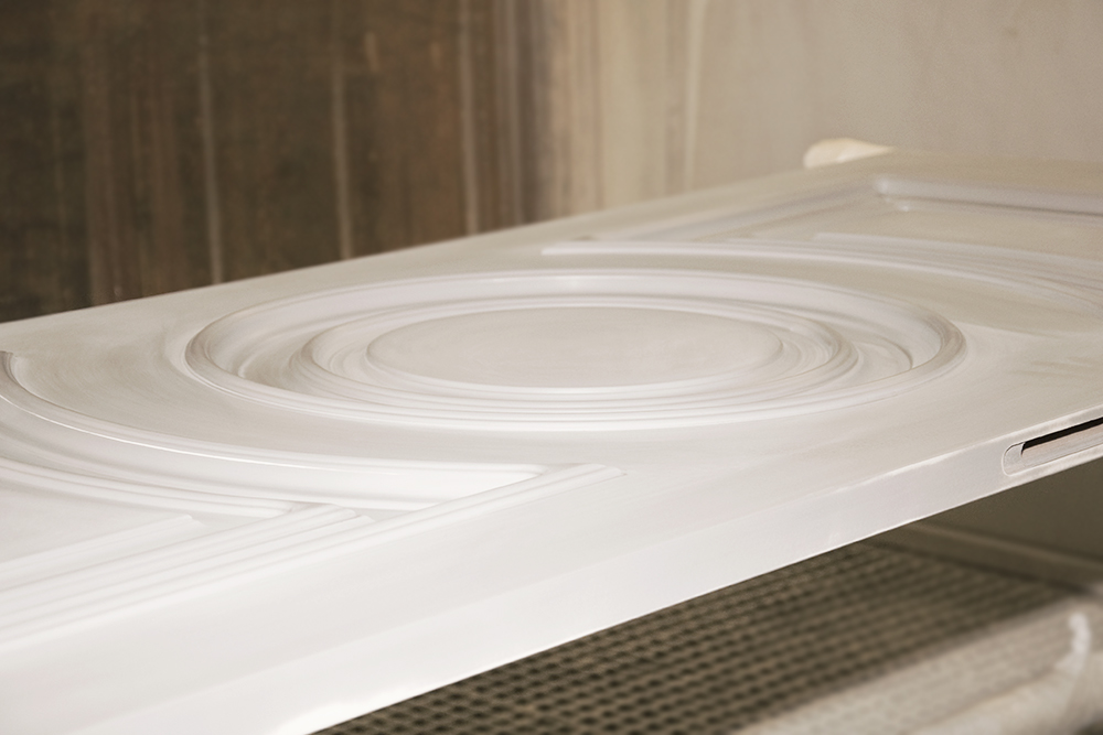 Для покрытия дверей коллекции E-Classic используется эмаль. Перед тем как нанести эмаль, дверное полотно тщательно грунтуется. Каждый слой краски наносится только после того, как полностью высохнет и будет прошлифован предыдущий. За счет этого покрытие ложится ровно, не деформируется и не вздувается. Чтобы покрытие было идеальным, в цехе покраски регулярно проводится уборка, которая исключает попадание посторонних частиц на дверь. Эмаль наносится в специальной малярной кабине, которая создает избыточное давление. Благодаря действию оборудования вся пыль, находящаяся в воздухе, выдувается за пределы камеры. Завершающим этапом изготовления двери становится покрытие безопасным лаком Hesse, который устойчив к образованию трещин, не изменяется под действием повышенной влажности и солнечных лучей.