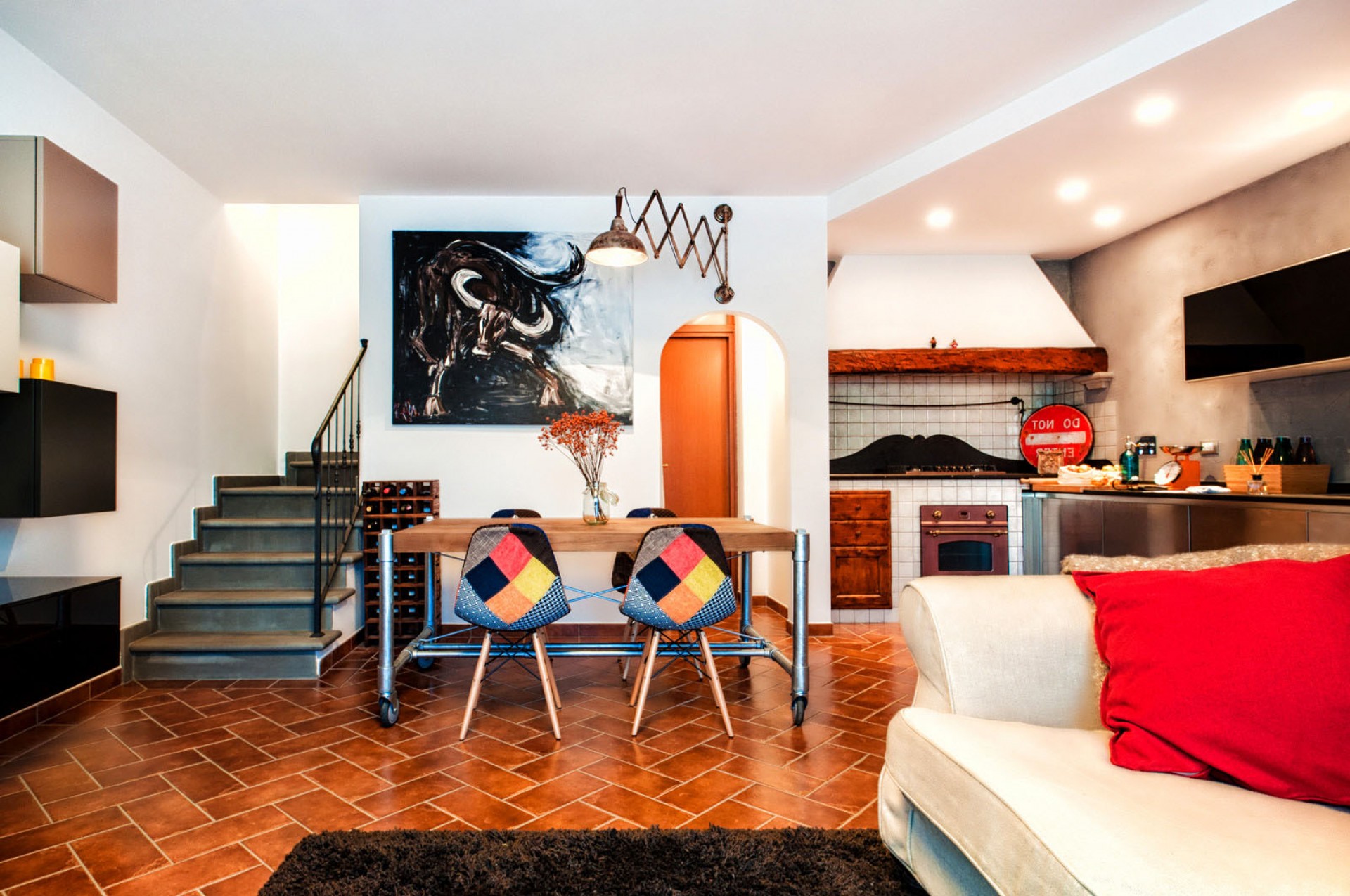 В эклектичный интерьер хорошо встраивается живопись: от сдержанной классики до яркого абстракционизма.
