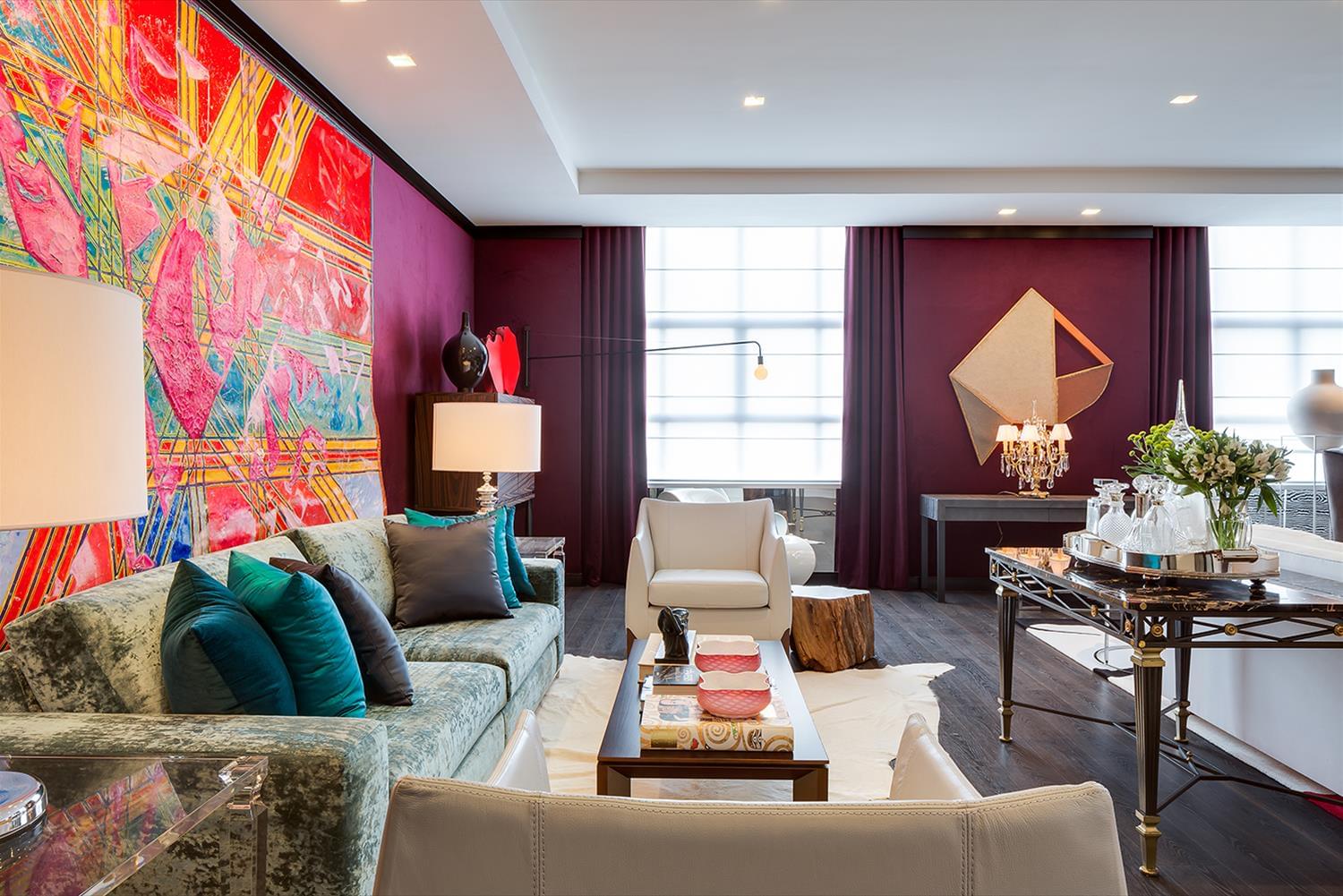 Цветовые контрасты строятся на сочетании ярких цветов, а не объединении светлых и темных оттенков одного цвета. Поэтому интерьер получается многогранным, наполненным, глубоким.