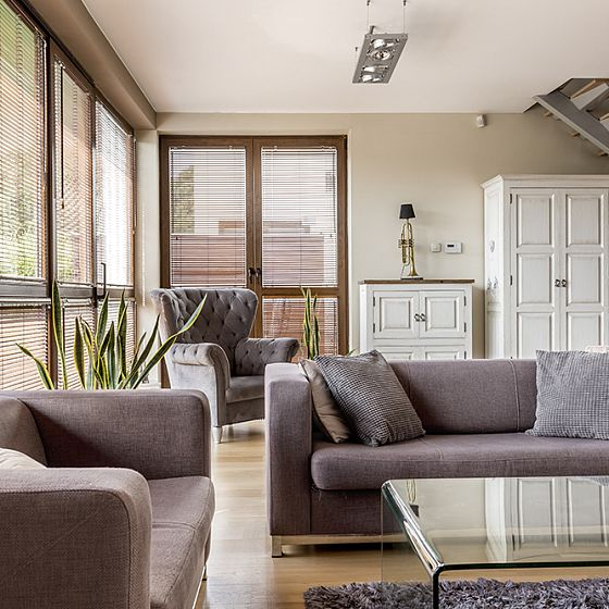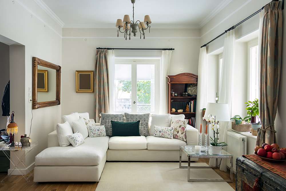 Вместо штор лучше декорировать окна полупрозрачными римскими шторами или современными жалюзи. Мебель подбирается компактных размеров, чтобы не загромождать пространство. Она должна быть функциональной и удобной, оформленной замшей, кожей, льном или хлопком. Добавить в интерьер еще больше натуральных материалов и природных мотивов позволят атмосферные корзины и подставки из лозы, декор из соломы, глиняные вазы и статуэтки, красивые букетики из сухоцветов, лоскутные одеяла. Неотъемлемой частью скандинавского стиля считаются фотографии или картины на морскую тематику, а также семейные фото и фамильные ценности.