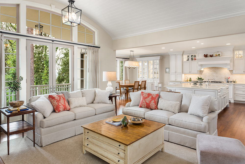 Скандинавский стиль — это, прежде всего, обилие света и натуральных материалов. Гармония и целостность начинаются с панорамных окон, удобной мебели из экологичных материалов, дерева на полу и в отделке, а заканчиваются соответствующей цветовой гаммой: теплые пастельные тона, например, песочные, бежевые, молочные, светло-коричневые. Главный цвет - белый, он визуально увеличивает пространство и придает обстановке легкости. Стены преимущественно покрывают декоративной штукатуркой и красят в сливочный, льняной или голубоватый оттенки. Чтобы красиво разграничить пространство и сделать его более уютным, в дизайне часто участвуют деревянные панели. Для пола используется паркет или ламинат с красивой естественной фактурой сосны, липы или ольхи. Двери подбираются простые, одноцветные, чаще всего покрытые эмалью. Их дизайн должен быть лаконичным и легким.