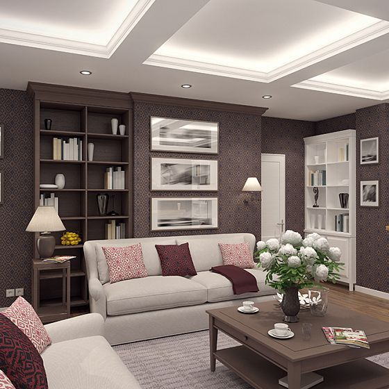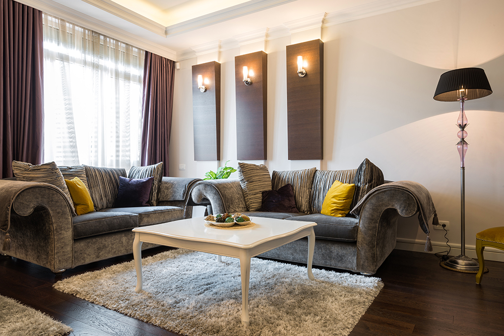 Стиль модерн наполнен светлыми приятными тонами, такими как приглушенно-сиреневый, бежевый, небесный, неяркий розовый, оттенок чайной розы. Сделать обстановку более интересной и неординарной помогают яркие акценты: ковровые покрытия с броским орнаментом, контрастные стулья или пуфы, декоративные или настоящие цветы, самобытные светильники, картины. Приветствуются также антикварные или в ретро-стиле предметы декора, бра в виде канделябров.