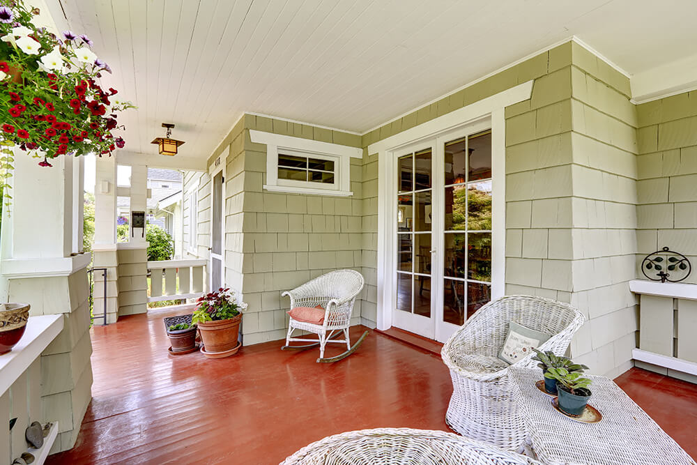 Отличное решение для покрытия пола — деревянные доски, паркет или ламинат под старину. Поверх них можно положить домотканые половики или шерстяные коврики. На полу в ванной комнате или кухне можно положить керамическую плитку крупных размеров с эффектом старины. Цвет для пола лучше выбирать в серой или песочной гамме оттенков. В дополнение к отделке лучше выбирать светлые двери с эффектом патинирования. Рамы на окнах лучше всего делать белыми, а сами проемы максимально большими.