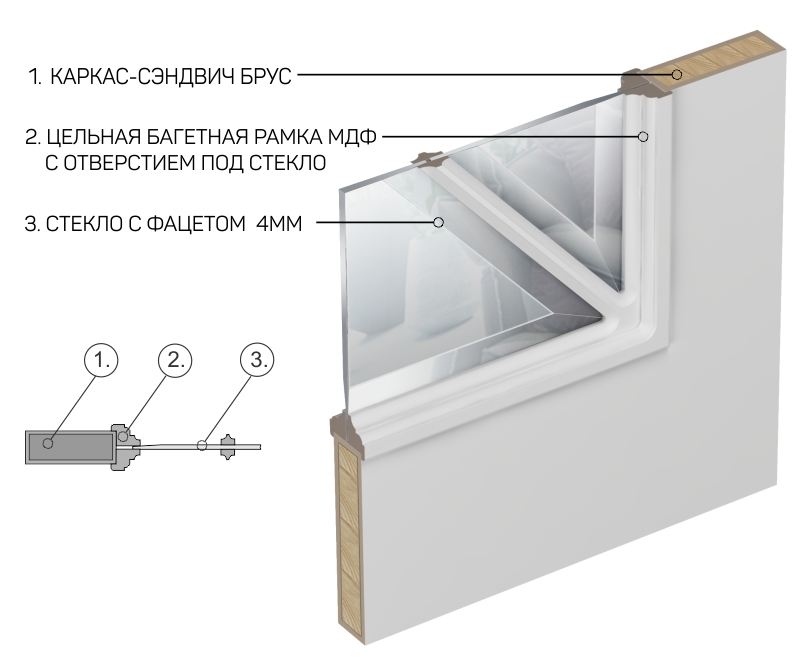 Багетная рамка помогает надежно закрепить филенку, а также устанавливать различные декоративные элементы.