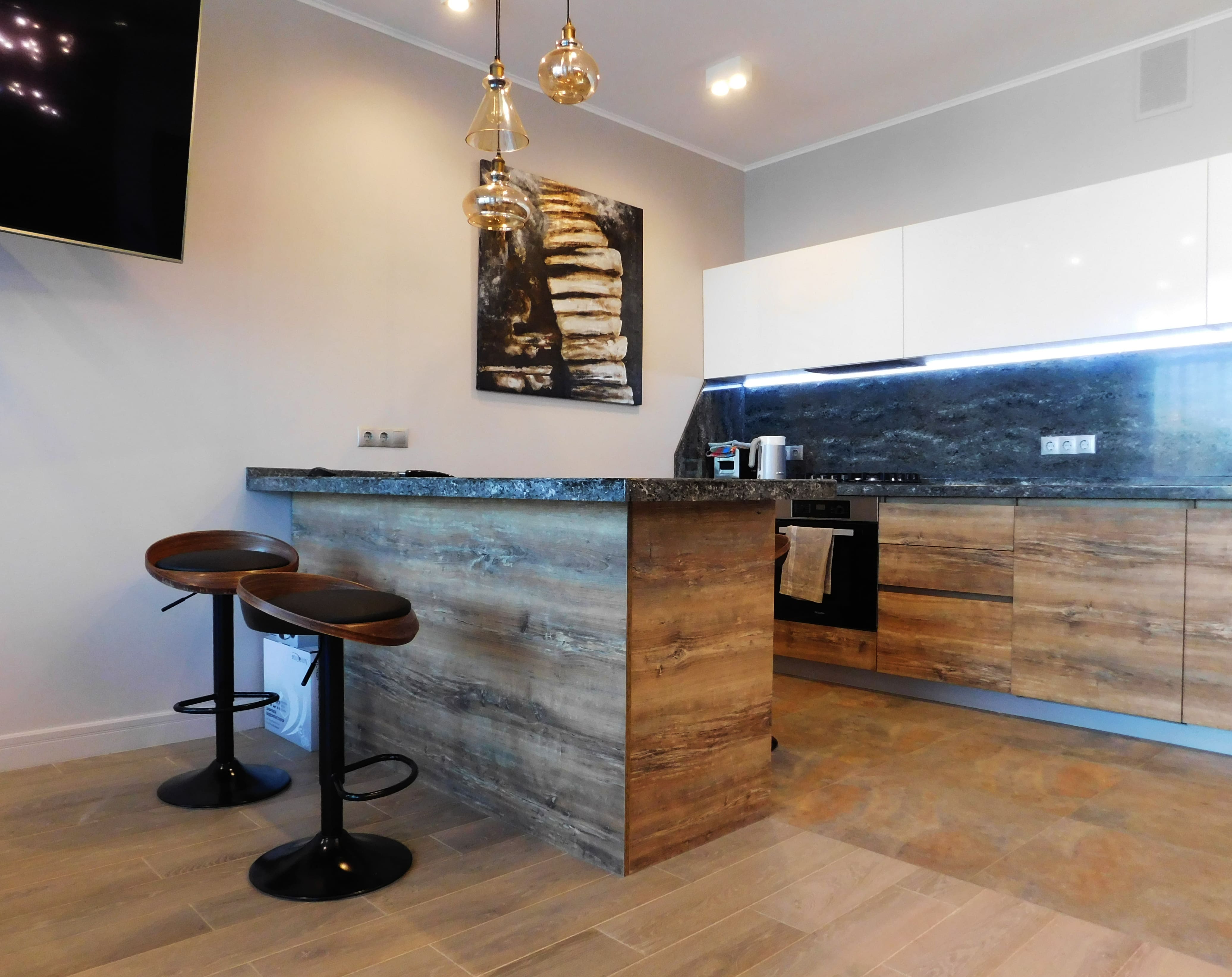 Для этого проекта мы выбрали двери Terem модель TWIST 04 в серо-коричневой эмали с наличниками и доборами. Эта модель дверей отлично вписалась в проект: довольно строгая, диагонали добавляют статуса, но не тяготеют к классике.