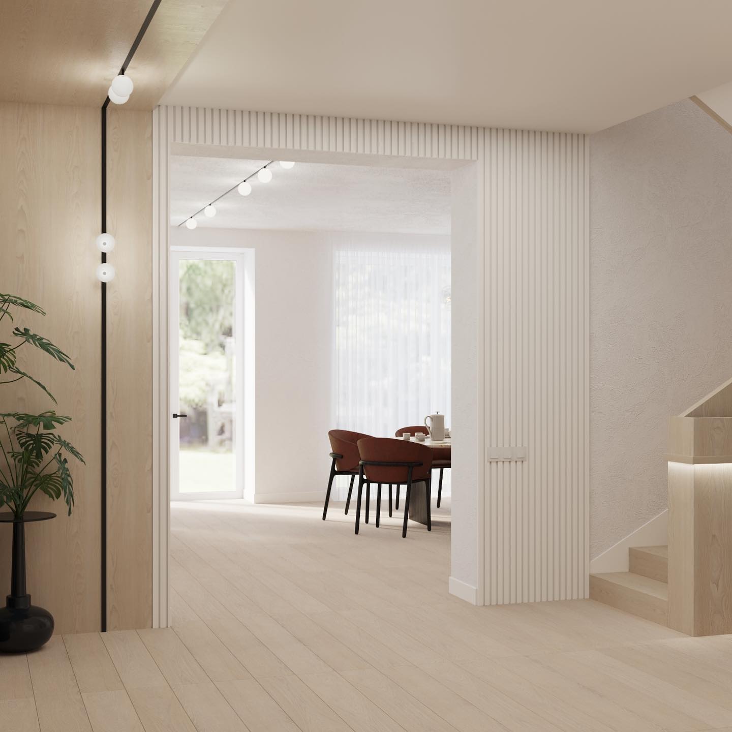 В проекте использовали: двери с компланарным погонажом и стеновые панели в натуральном шпоне "Песочный дуб". Такое стилистическое решение сейчас считается трендом и даёт волю для фантазии! P.S. Планируется ручная роспись дизайнером-декоратором, вызывает полный восторг!