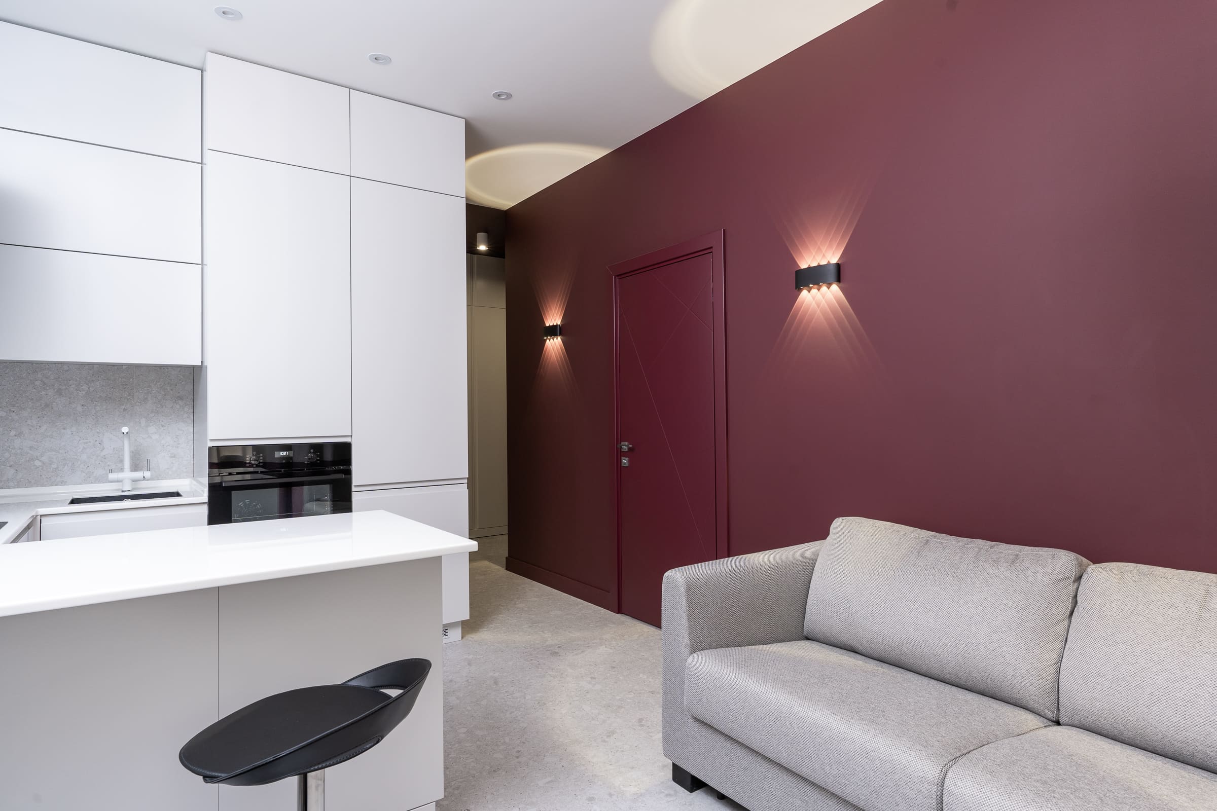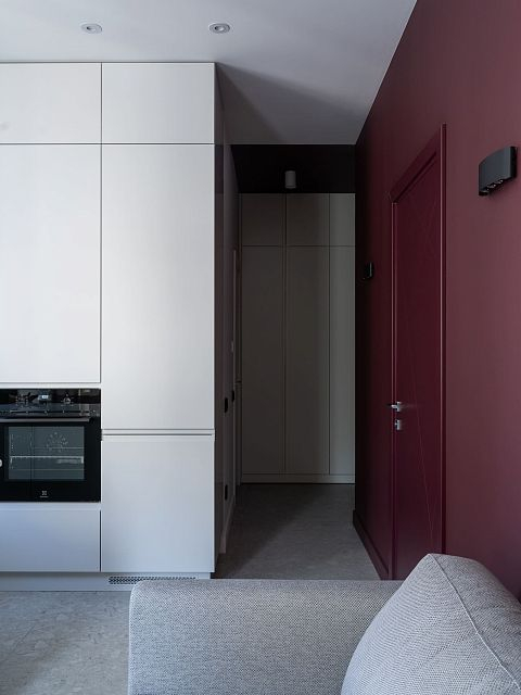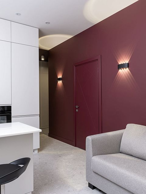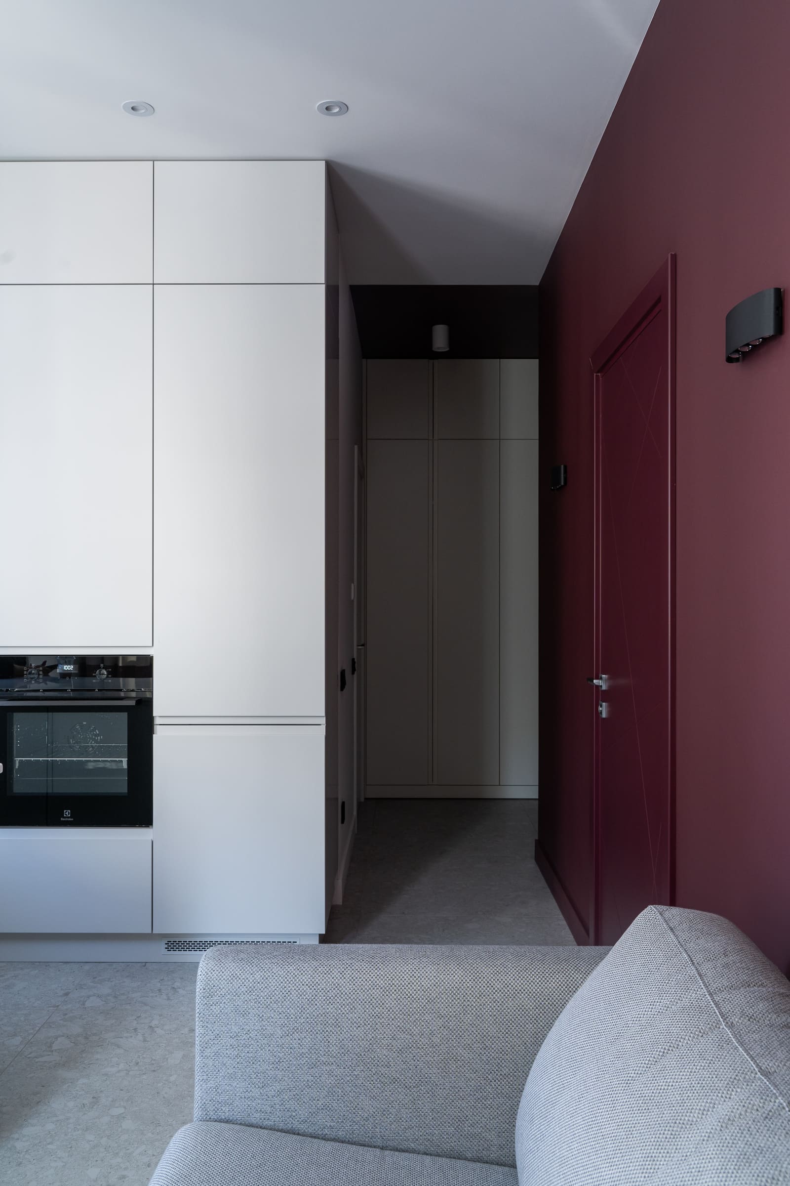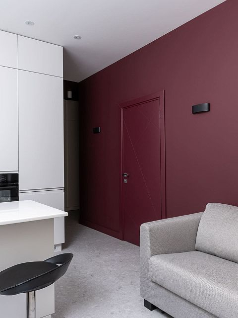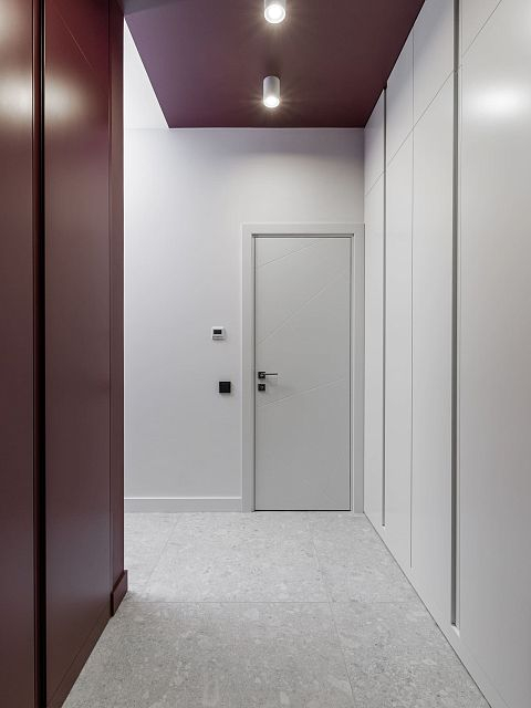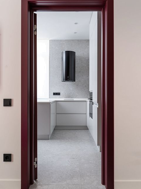 Для дверных проемов Софья выбрала модель Twist 01 в бордовом и белом цвете - в зависимости от цвета окружающих полотна стен. Получилась яркая и в то же время сдержанная композиция.