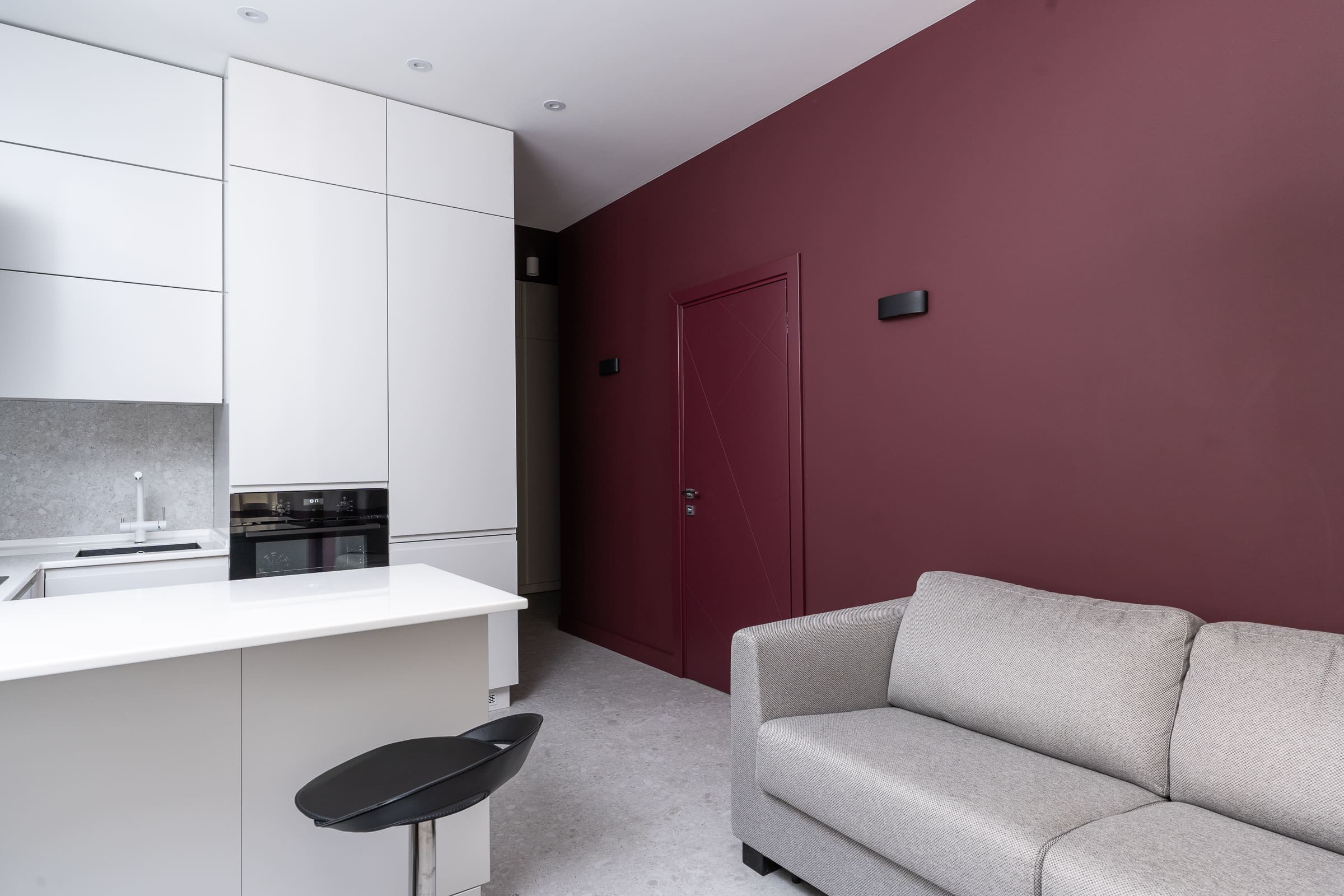 В небольшой по площади квартире дизайнер разместила все необходимые мебель, системы хранения, зоны для отдыха.