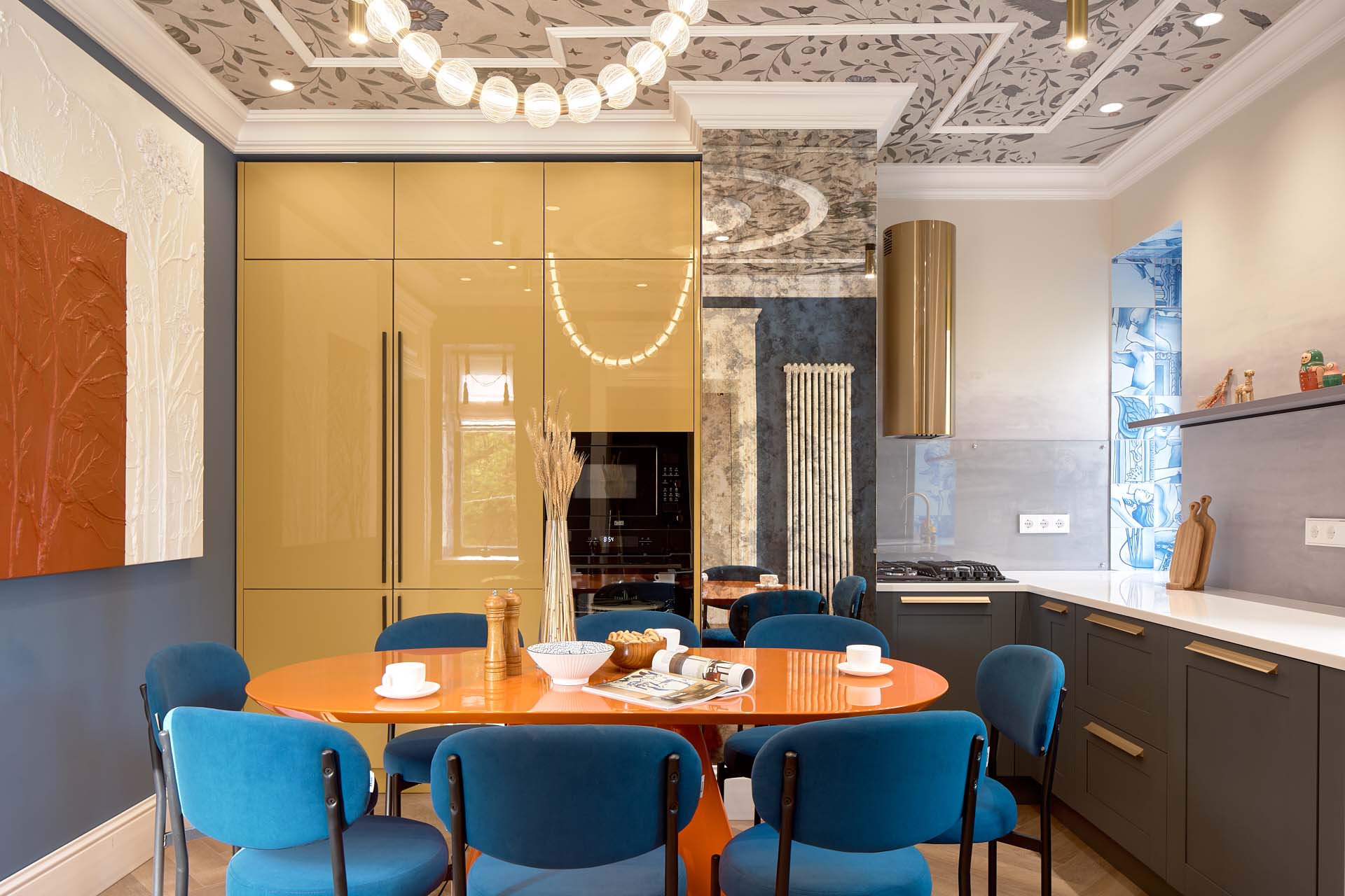 В новом проекте «Русская сказка для кухни-столовой» от «Дачного ответа», созданном талантливыми дизайнерами Анастасией Орловой и Полиной Абакумовой, зарождается уникальный стиль, гармонично объединяющий традиции и современность.
