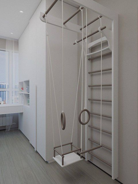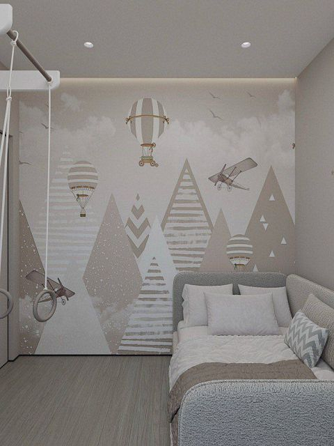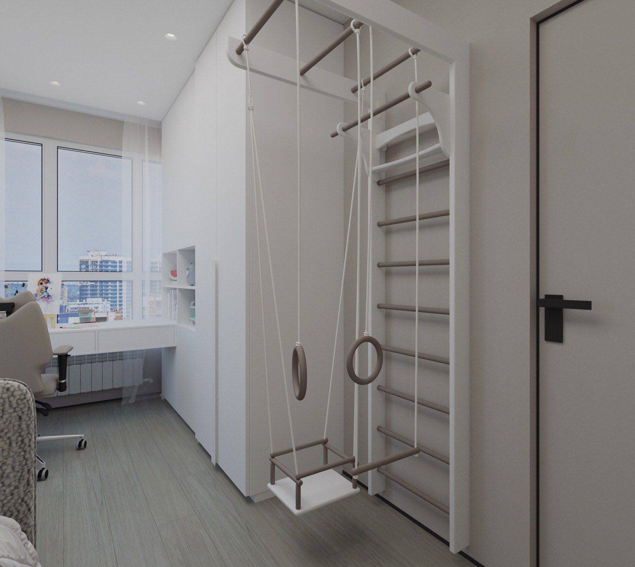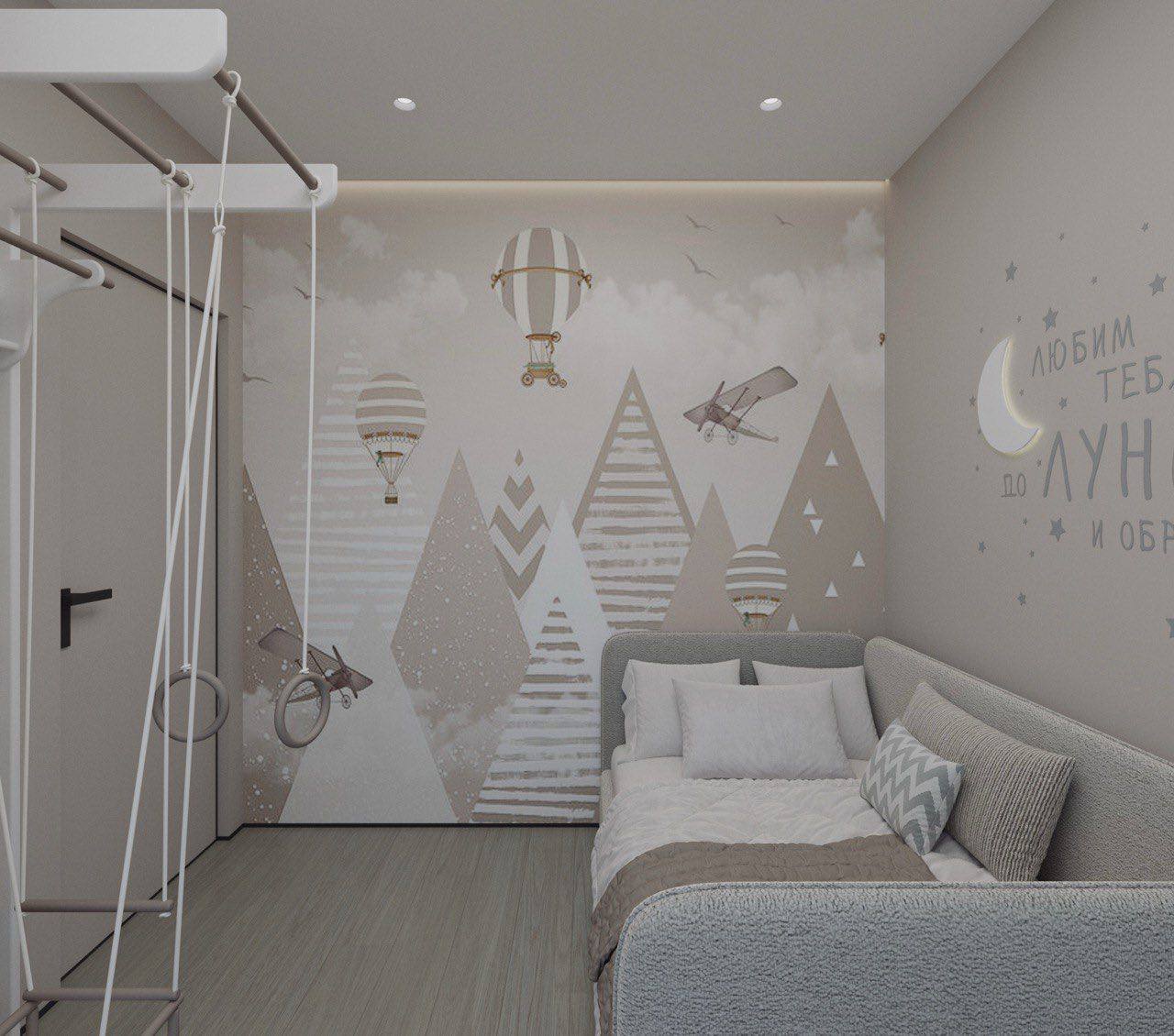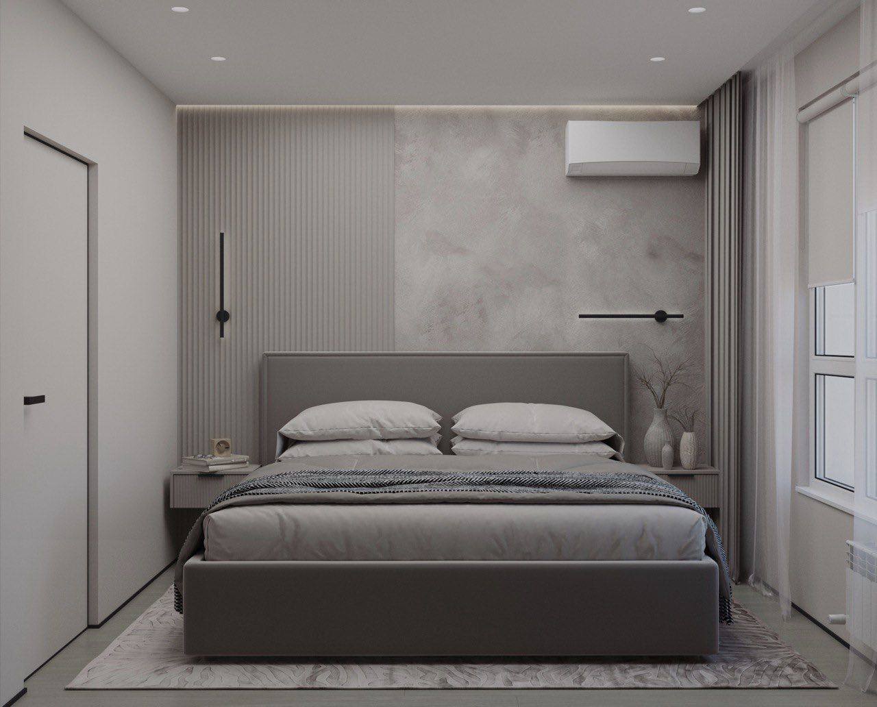 Основные цвета интерьера: белый, светло-серый и тёплый беж, с акцентами натурального дерева.