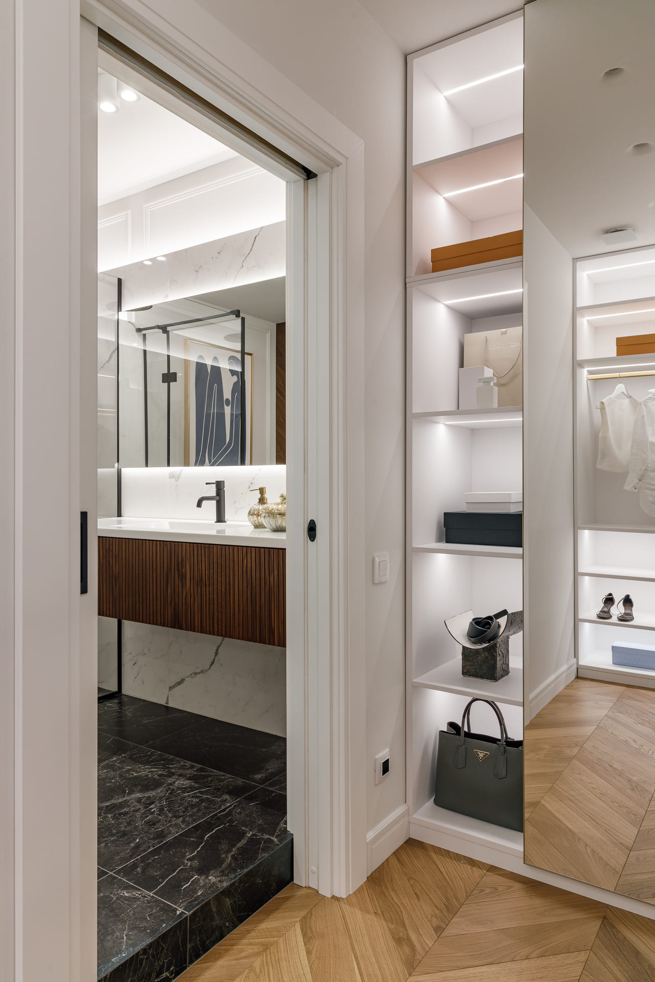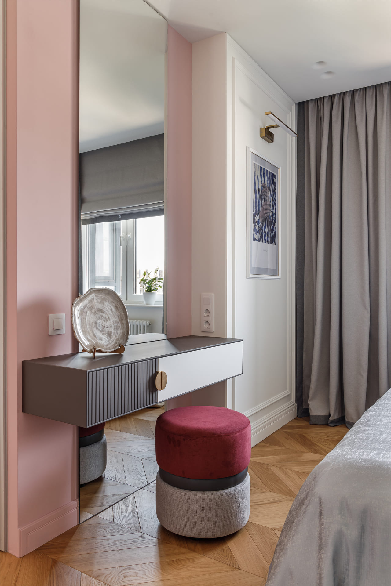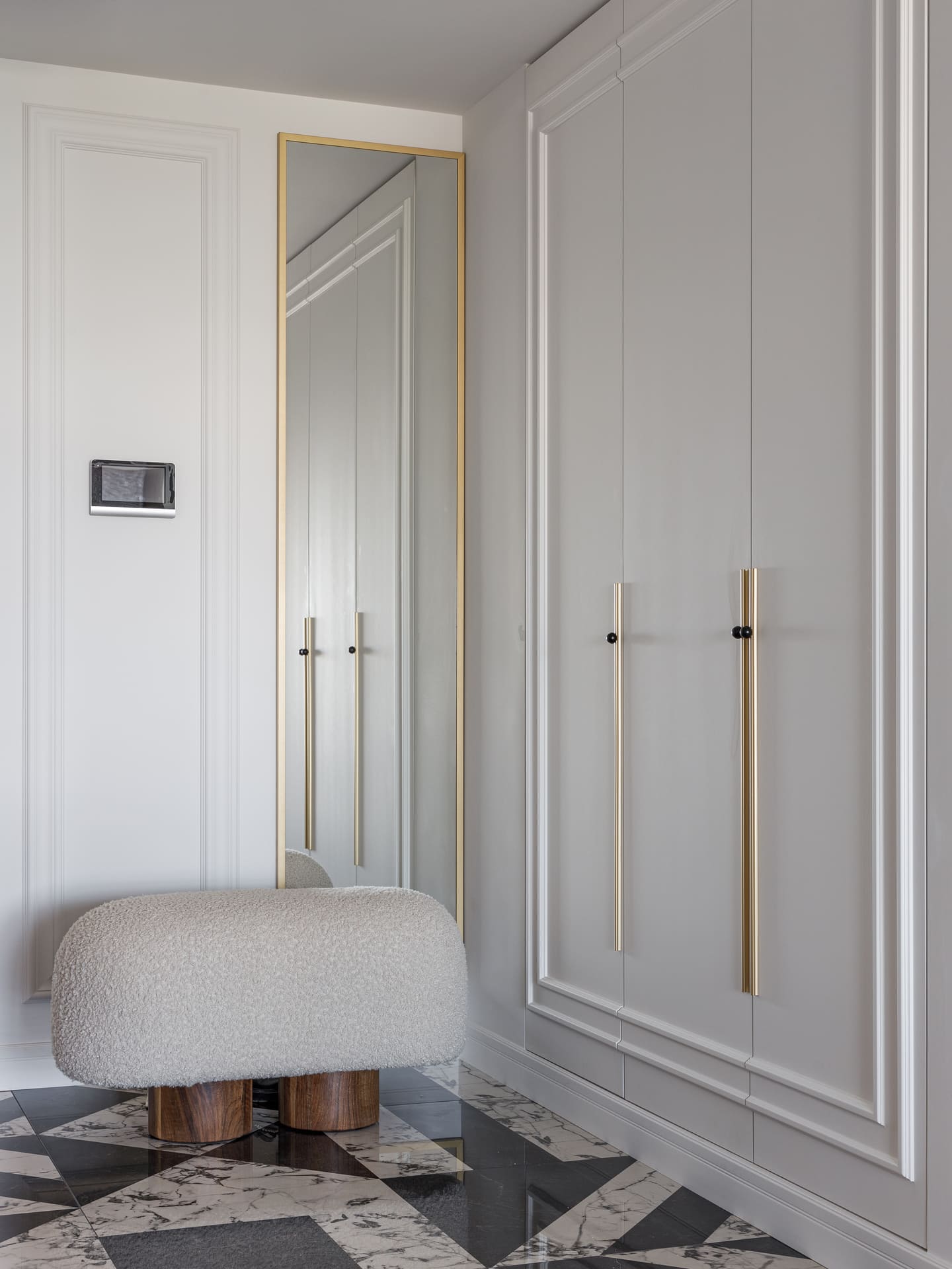 Проект "Светлая квартира для девушки" выполнен в стиле неоклассики, который идеально сочетает элегантность и технологичность. Этот стиль позволяет создать атмосферу утонченности, при этом внедряя современные решения, что делает интерьер не только красивым, но и функциональным.