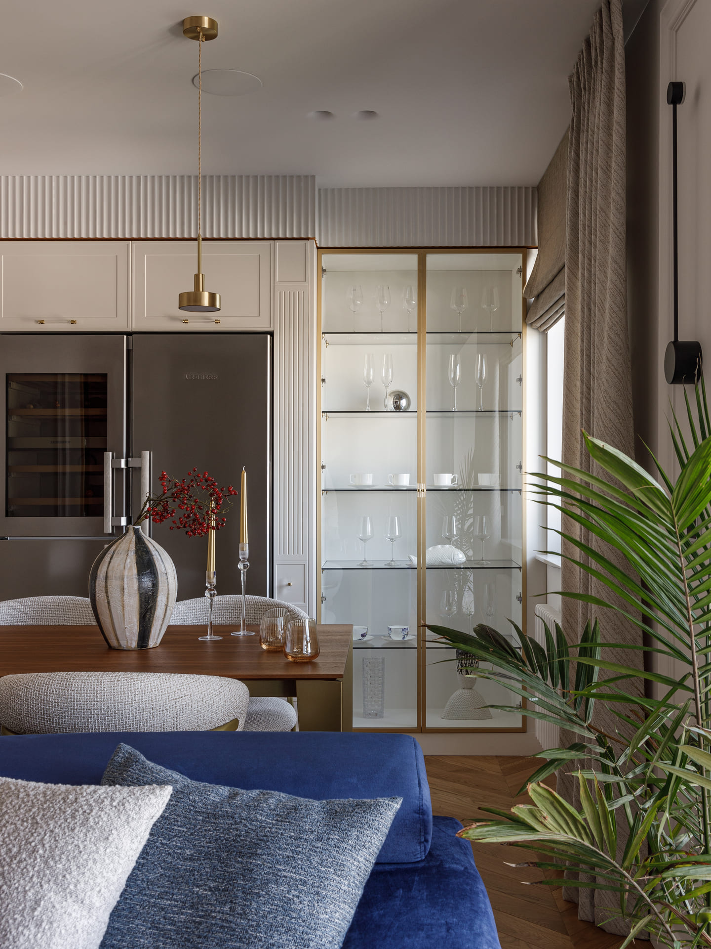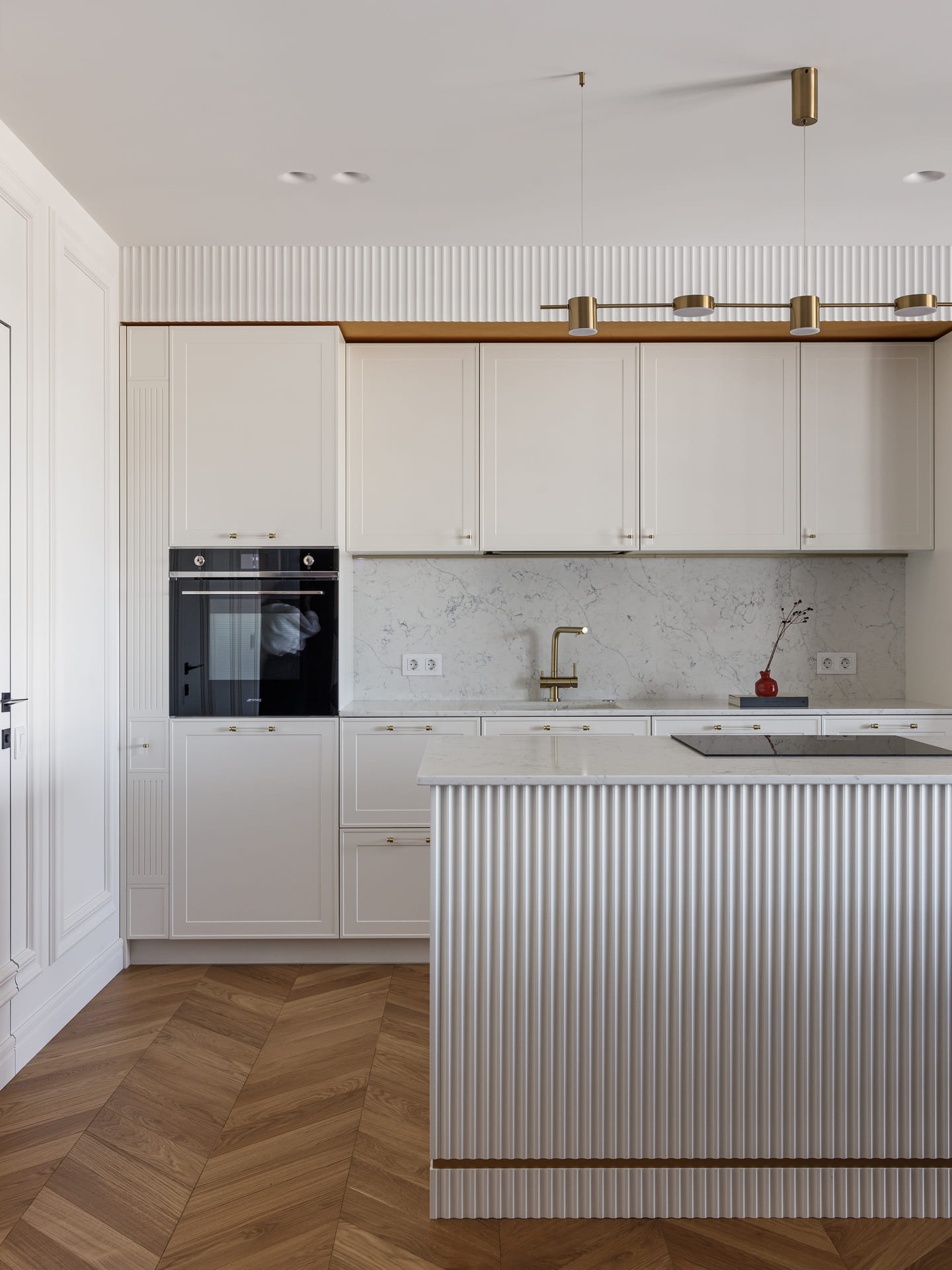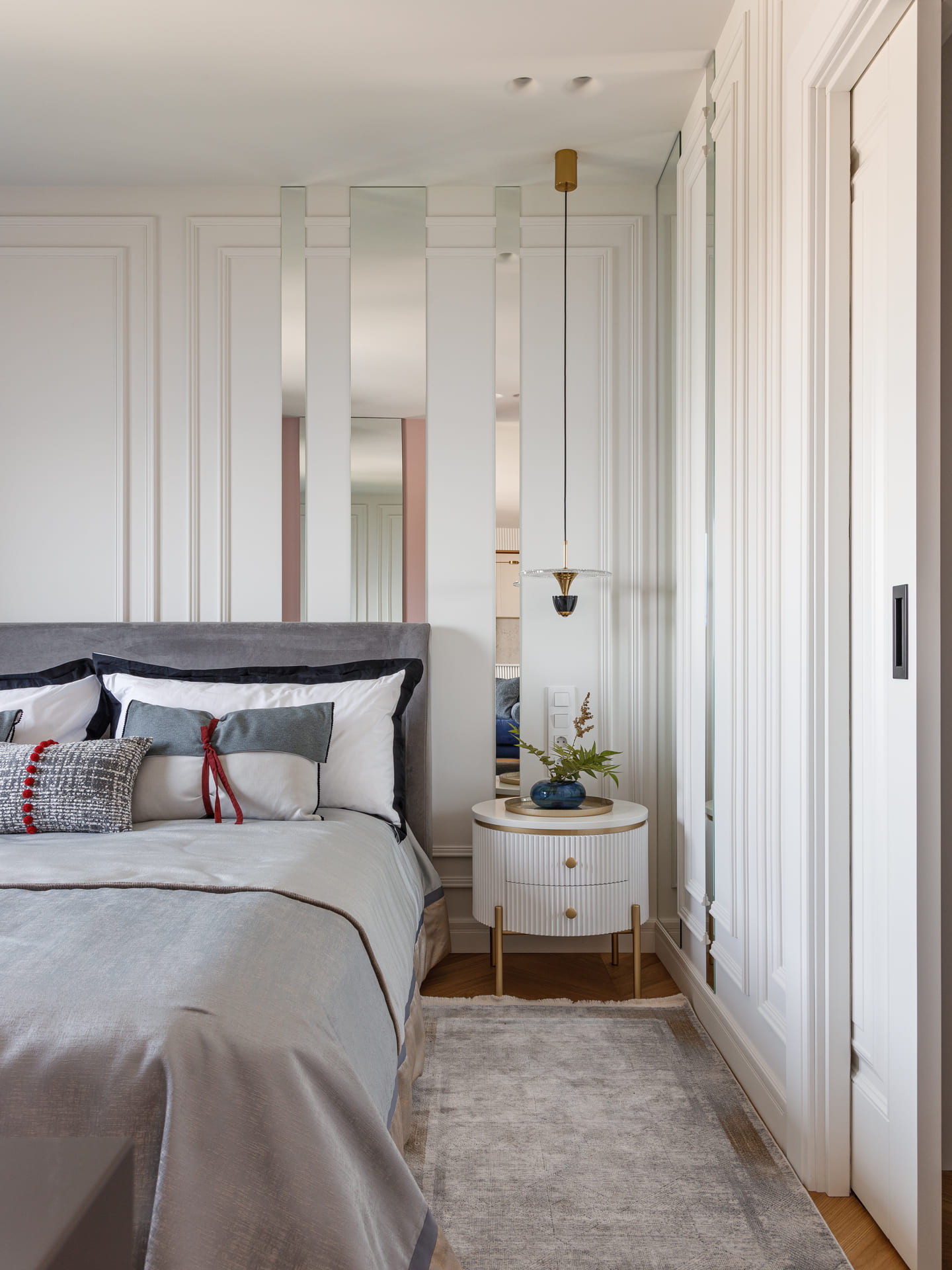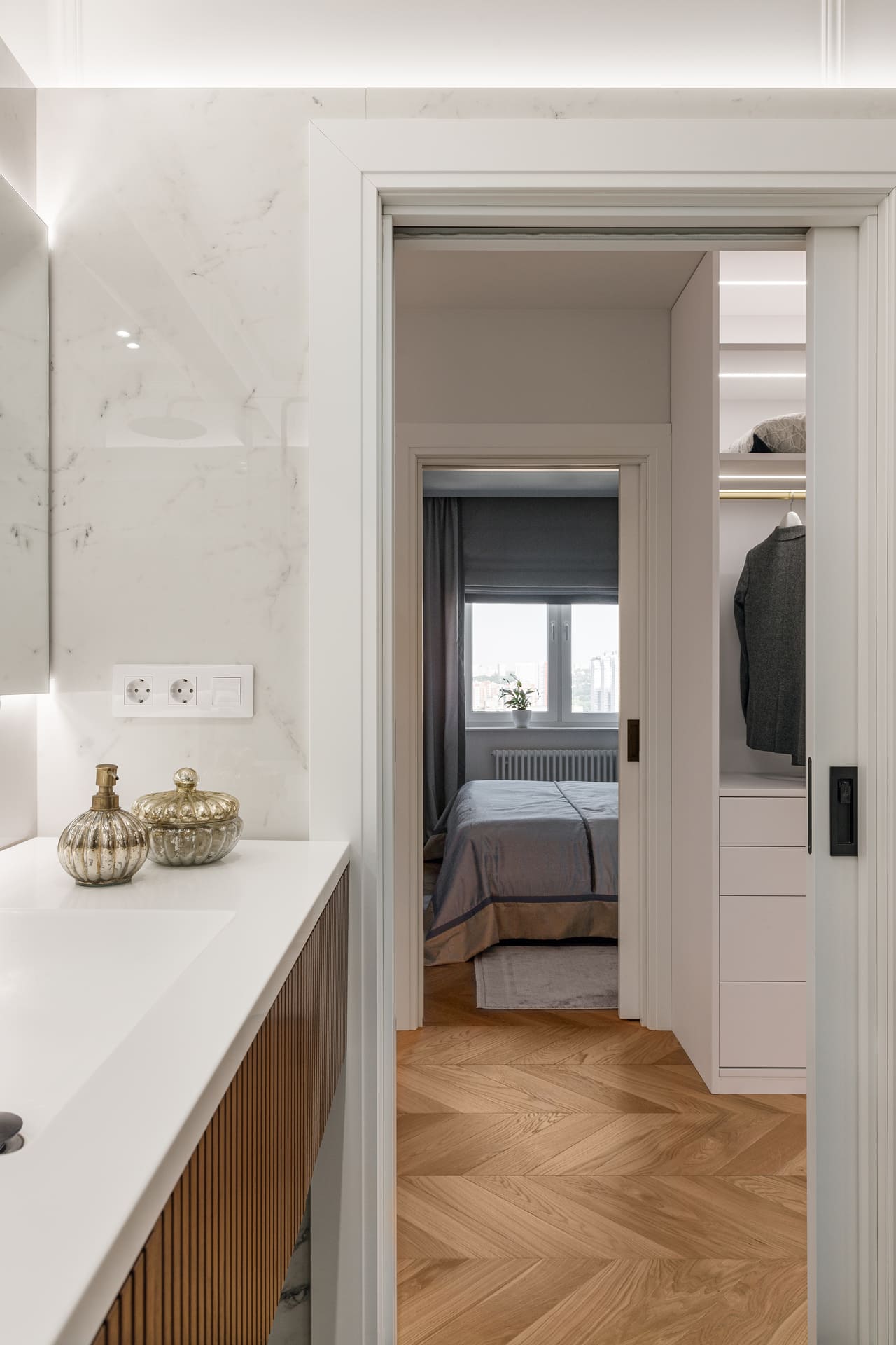 Проект "Светлая квартира для девушки" выполнен в стиле неоклассики, который идеально сочетает элегантность и технологичность. Этот стиль позволяет создать атмосферу утонченности, при этом внедряя современные решения, что делает интерьер не только красивым, но и функциональным.