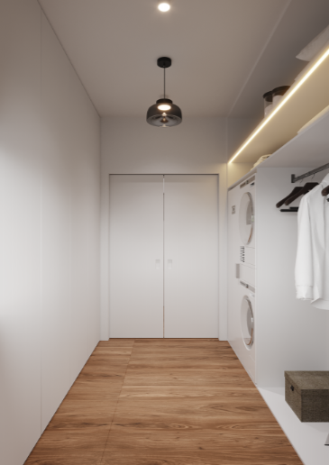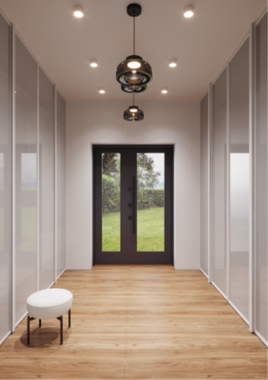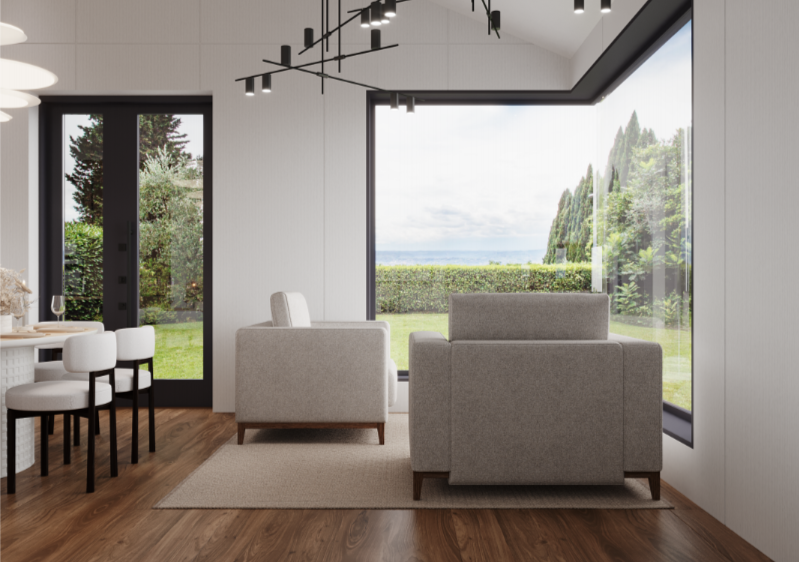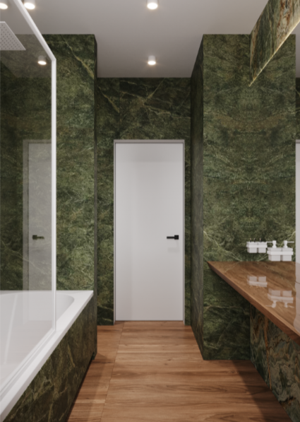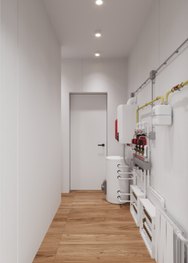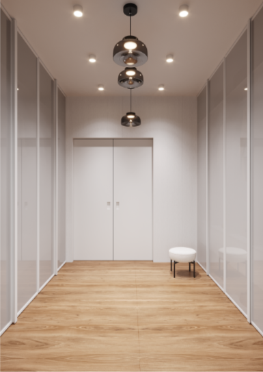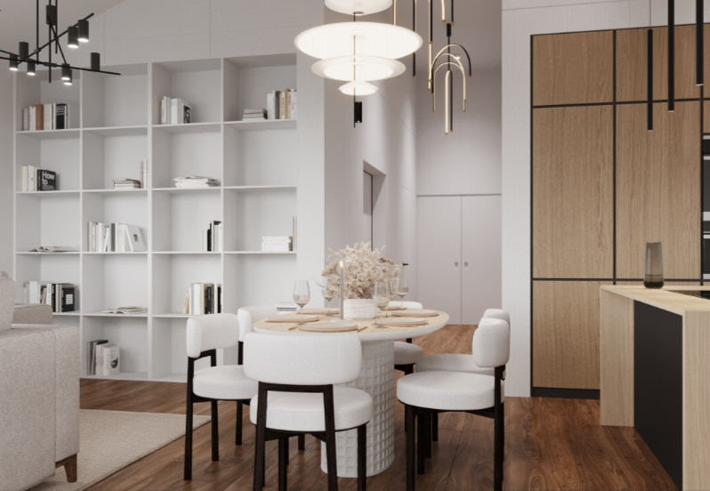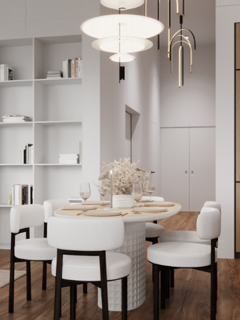 Проект включает в себя систему «умный дом», тёплые полы и высокие потолки высотой от 2,8 метров, что делает пространство еще более воздушным и просторным. Двери скрытого монтажа усиливают минималистичный стиль, а дизайнерская мебель и мебель под заказ гармонично вписываются в общую концепцию.