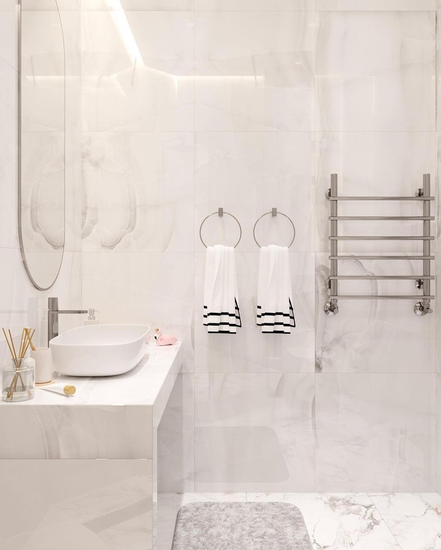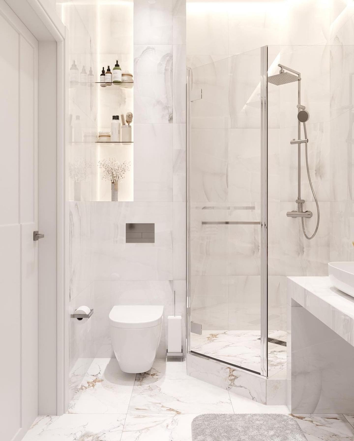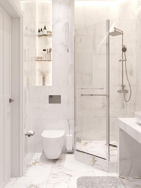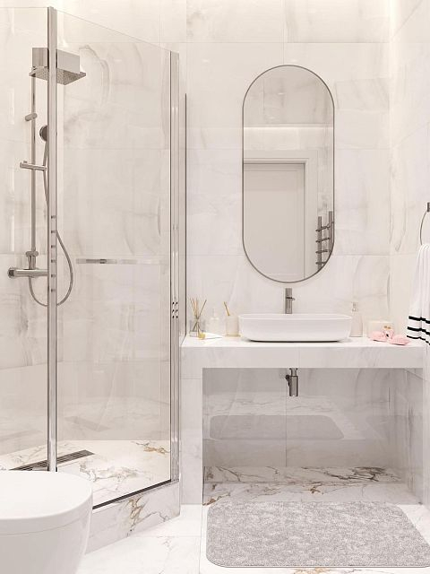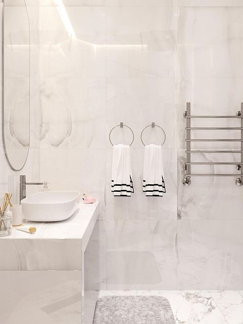 Безумно красивое сочетание современного стиля и светлых тонов во всем помещении, а наша дверь Podio 02 отлично вписалась в интерьер ванной комнаты, согласны?