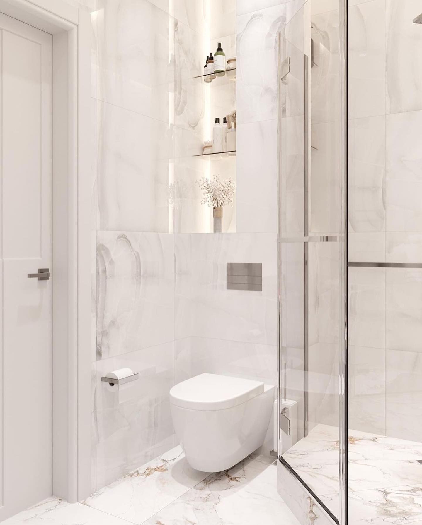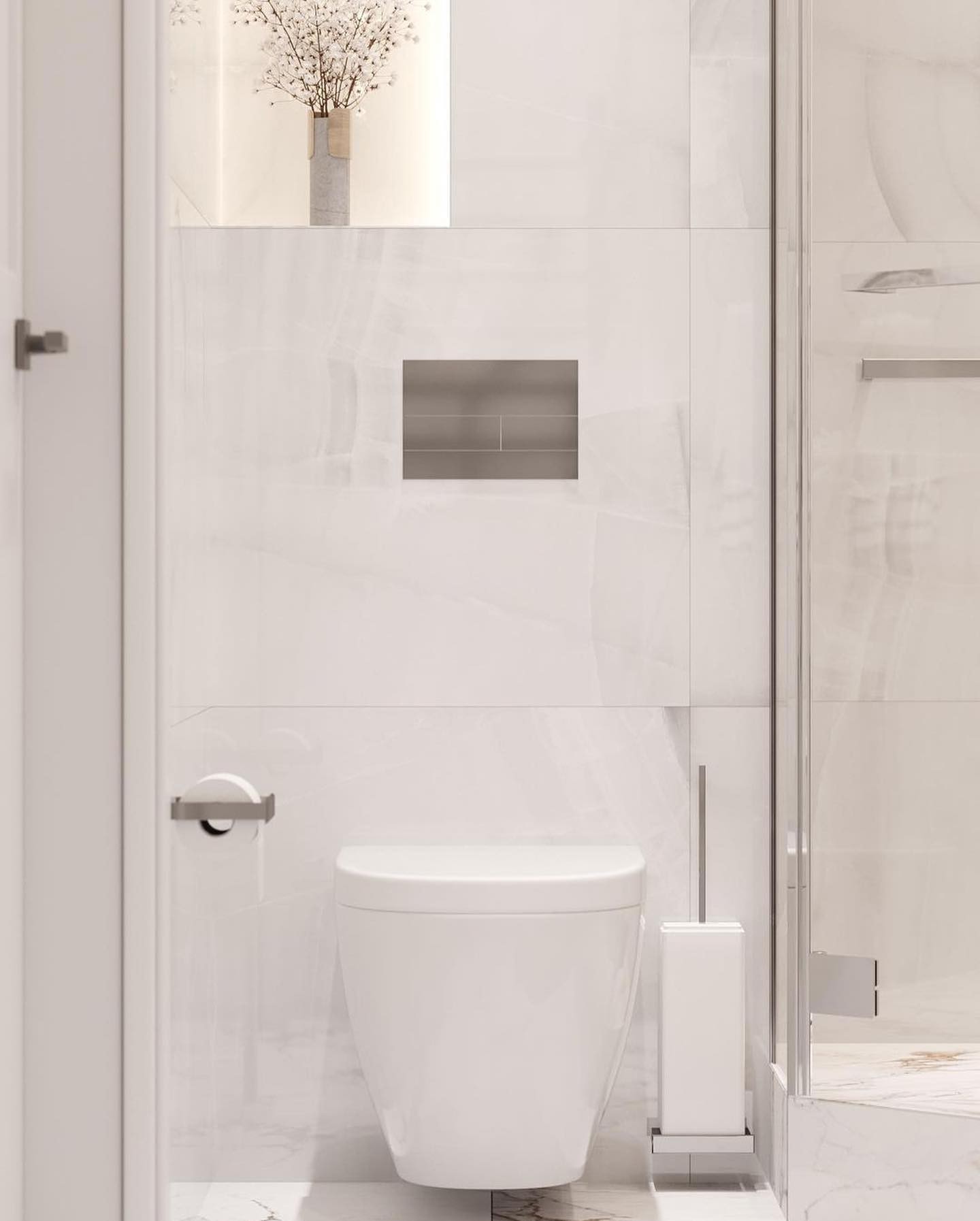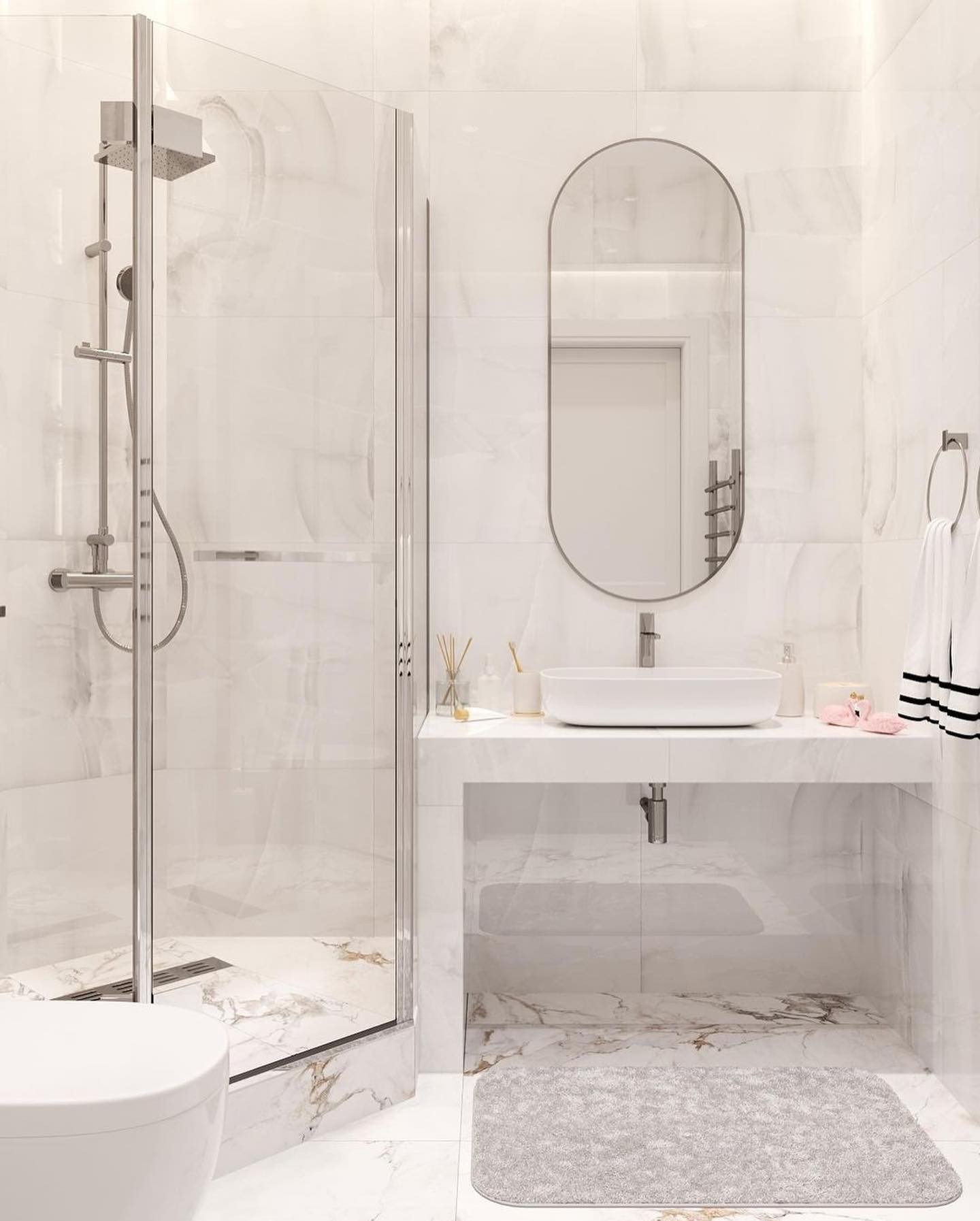 Безумно красивое сочетание современного стиля и светлых тонов во всем помещении, а наша дверь Podio 02 отлично вписалась в интерьер ванной комнаты, согласны?