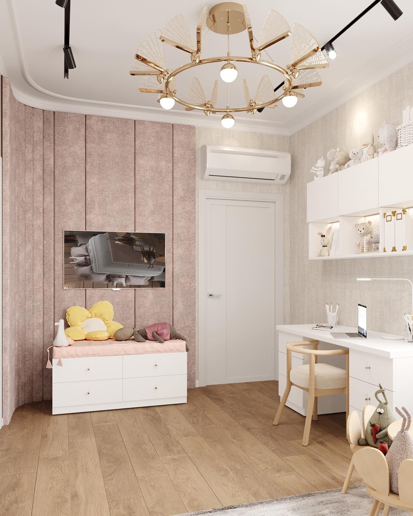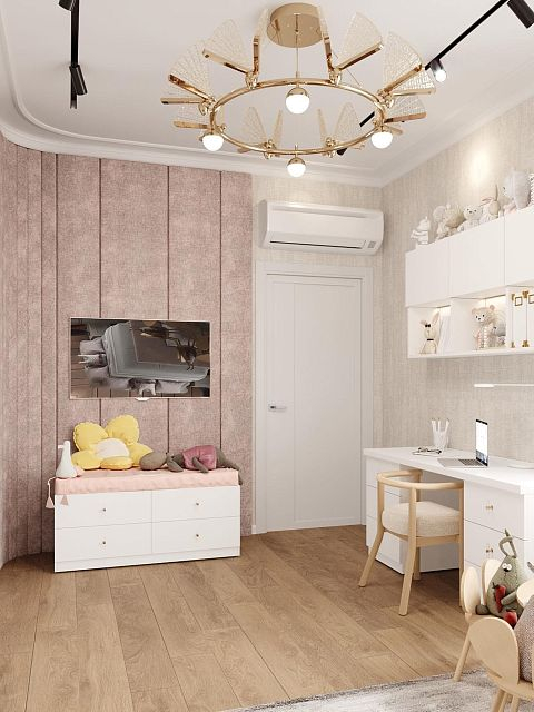 Нежный дизайн-проект небольшой комнаты в частном доме, выполненный для маленькой девочки.