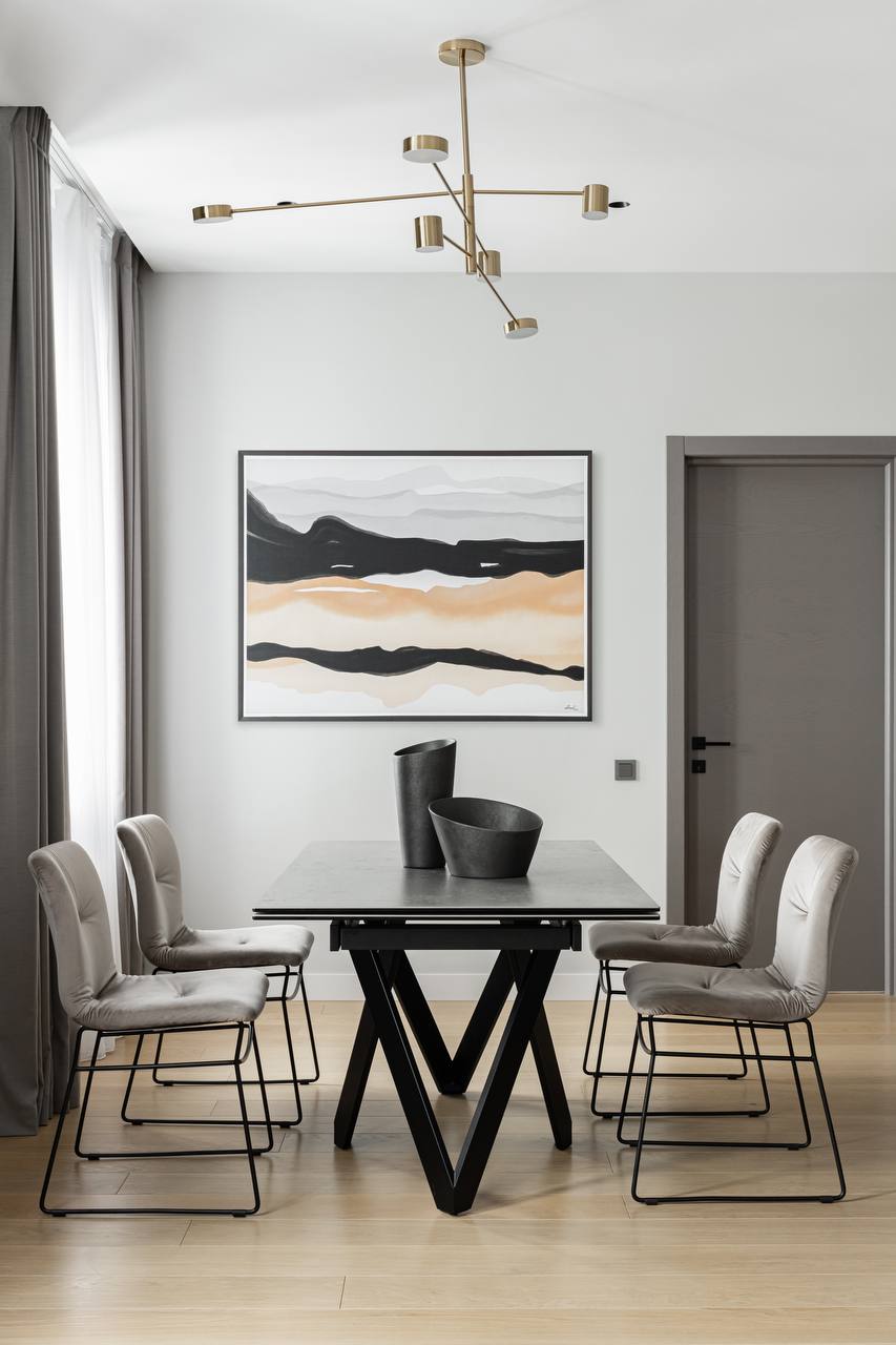 В проекте были использованы межкомнатные двери от фабрики Терем из коллекции Techno (модель Porte 01, в покрытии шпон «крашенный ясень»), которые со слов самого дизайнера отлично гармонируют с интерьером и задают определенный ритм фону.Приятно внести свой вклад в такой стильный интерьер. Благодарим за доверие Анастасию Никитину.