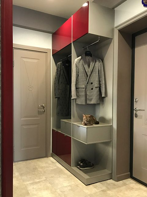 Слово автору проекта, архитектору-дизайнеру Оксане Хартек (г.Ульяновск) : «Это эклектика, в проекте совмещены классические и современные решения. Заказчики легко согласились на яркие цвета - солнечный жёлтый и насыщенный ягодно-красный. Объединяющим фоном стали оттенки серого.
