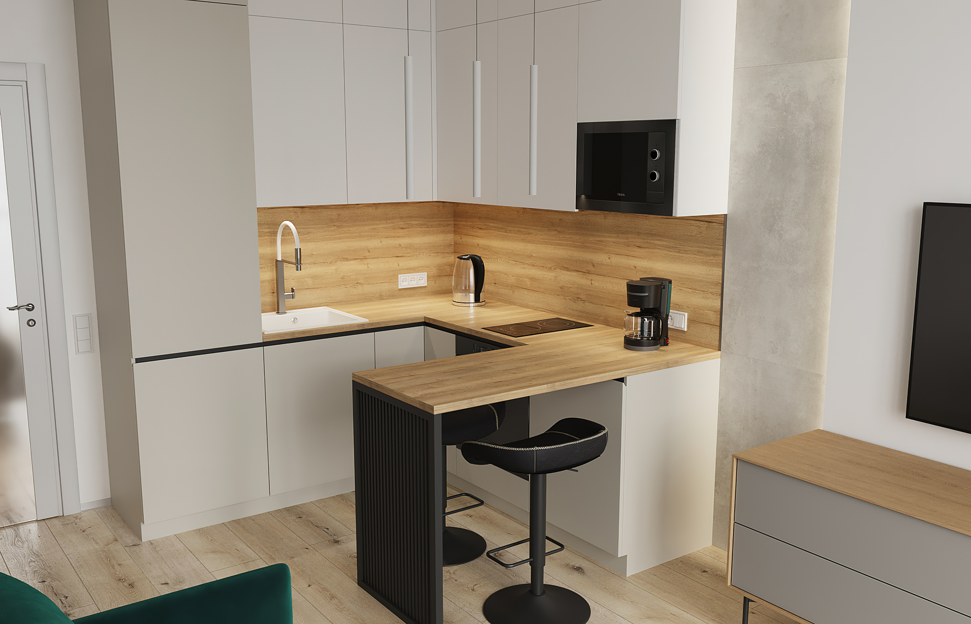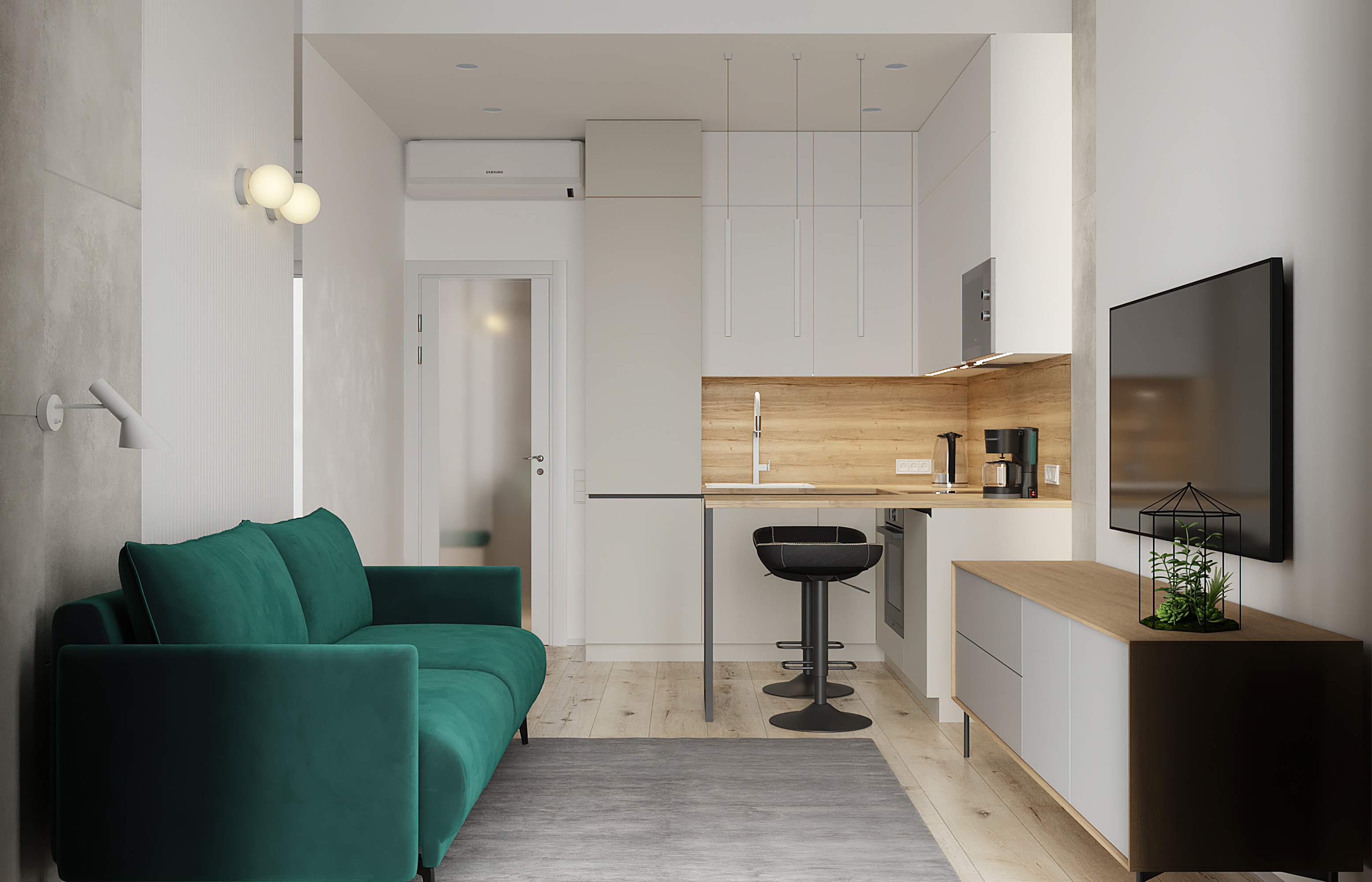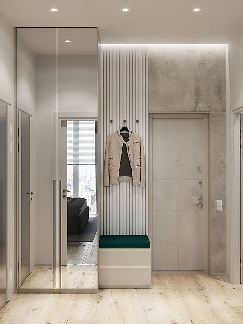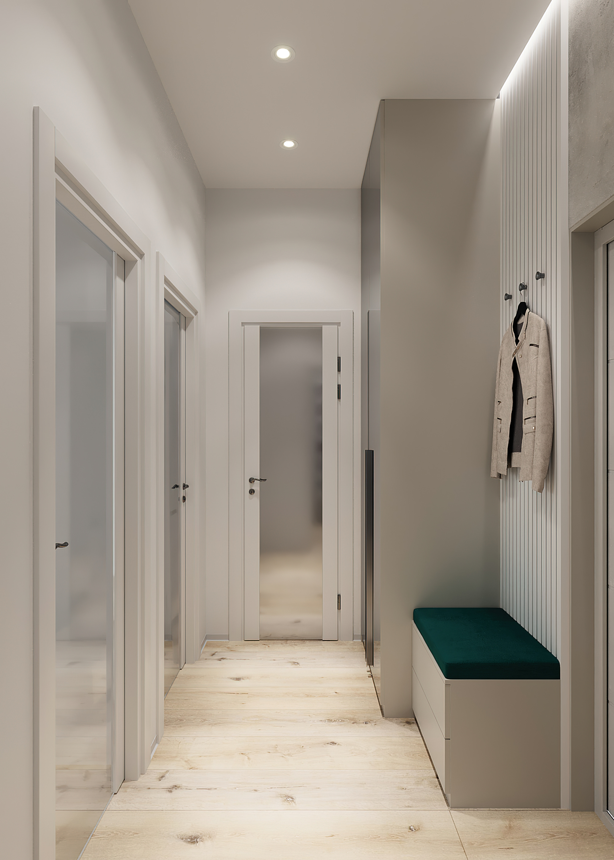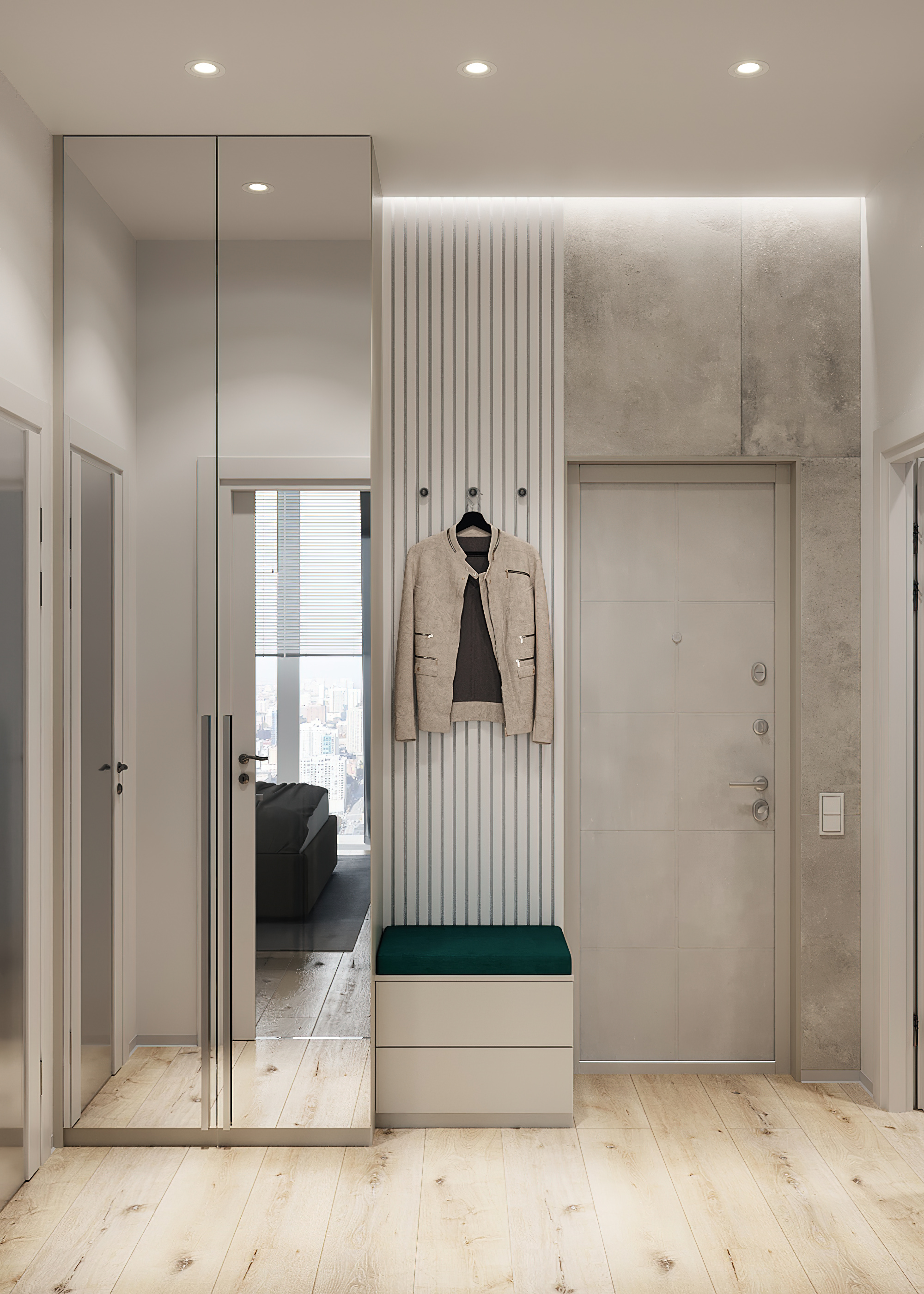 Минималистичный городской интерьер в Москва-Сити. Здесь нет ничего лишнего, все продумано до мелочей: цвета, материалы, эргономика. Все что нужно для комфортной жизни в большом мегаполисе. Дверь со стеклом Vario 11 добавляет визуальной легкости и простора интерьеру.