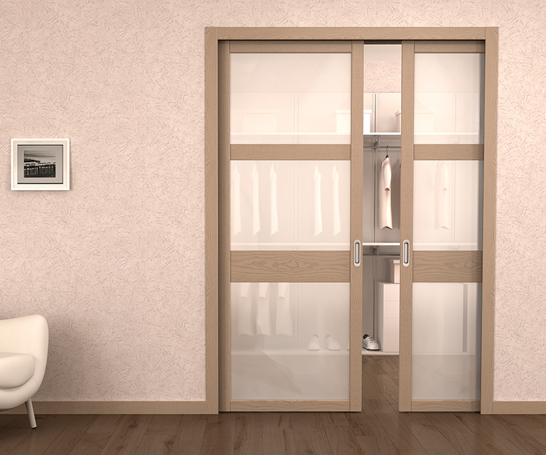 Межкомнатные перегородки могут состоять из одного или нескольких дверных полотен, оформленных в рамки. В двупольных раздвижных дверях створки могут передвигаться вдоль или задвигаться внутрь стены. Для последнего типа изготавливаются специальные коробки. Направление для движения дверного полотна можно выбрать любое.