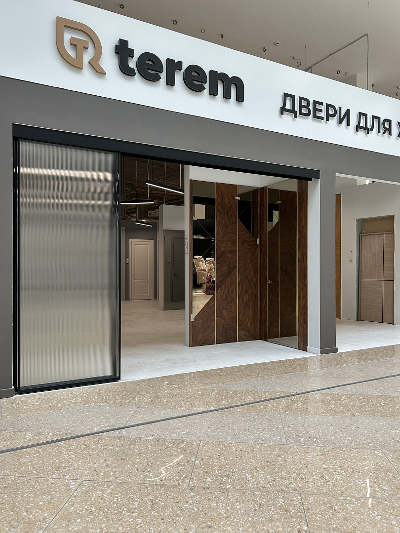 Фирменный салон Terem по адресу Санкт-Петербург, ТЦ "Кубатура", Фучика, 9, центральный проход, 1 этаж, секция 1.432, салон "Двери Терем"